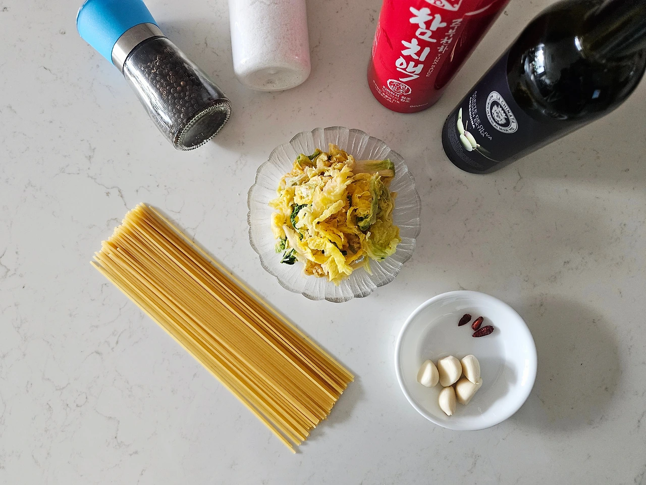 Mbti n이라서 그런가, 그냥 먹을 걸 좋아해서 그런가 평소에도 이걸로 이렇게 저렇게 하면 맛있겠는데? 하는 상상을 자주 하는 편이다. 이 날도 그분이 오셨다. 머릿속에서 마늘과 페퍼론치노를 볶고 배추를 넣고 이미 상상을 끝마쳤다. 상상으로는 이미 최고의 음식이 탄생했지만 실제로 해보면 어떨지 확신이 없다. 가족들이 없을 때 혼자 슬쩍 만들어 맛을 봤다. 오, 배추의 은은한 단맛에 감칠맛까지 더해서 너무 맛있다.
