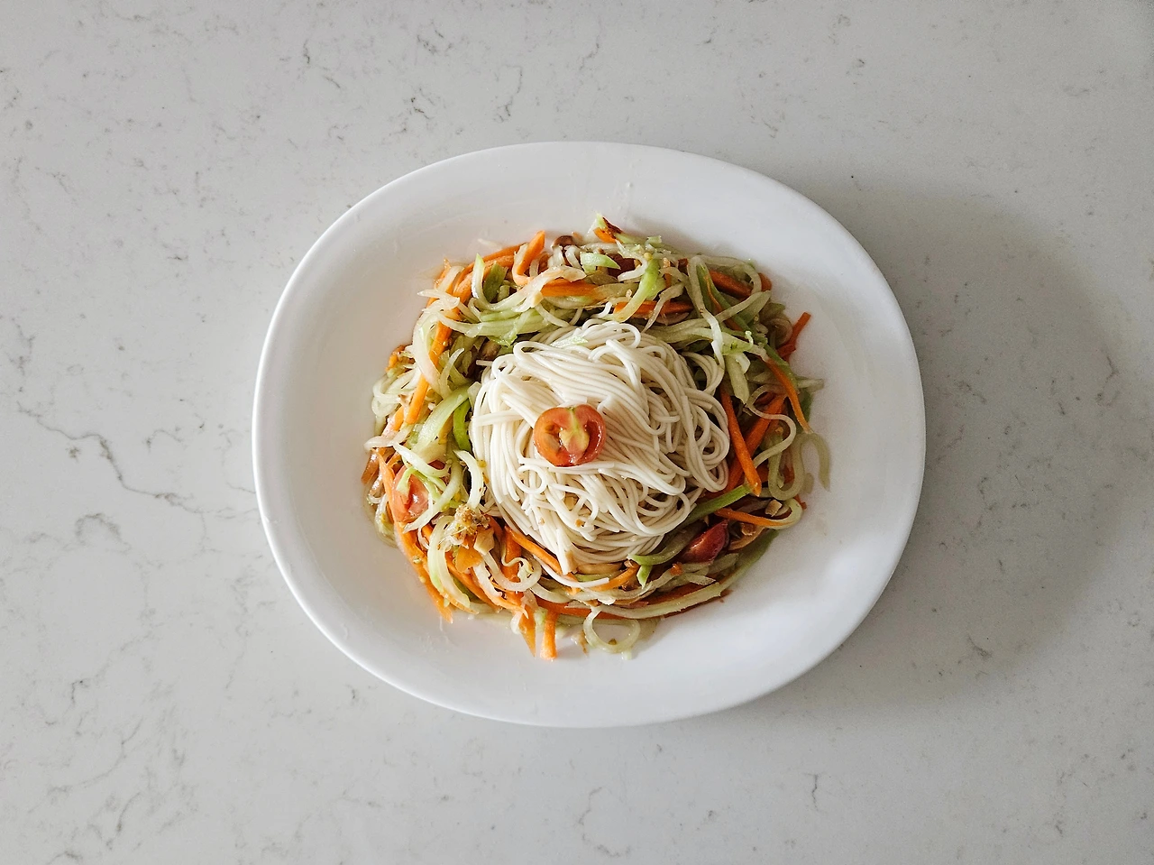 워낙 아삭한 식감과 새콤한 맛을 좋아해서 동남아 식당에 가면 사이드 메뉴로 쏨땀을 꼭 시키는 편이었다. 내가 지난 치앙마이 여행에서 얼마나 먹었나 찾아보니 각각 다른 식당에서 먹은 쏨땀 사진만 5개가 나왔다. 특히 기름기가 많은 음식을 먹을 때면 김치처럼 꼭 시켰다. 주로 볶음 요리가 많은 태국 음식에 물려 속이 더부룩할 때 찾는 것도 쏨땀이었다. 상큼하고 매콤한 쏨땀 한 그릇에 쌀국수면을 추가해서 먹으면 금방 개운해졌다. 굳이 우리나라 음식과 비교하자면 비빔국수 같은 거 아니었을까?