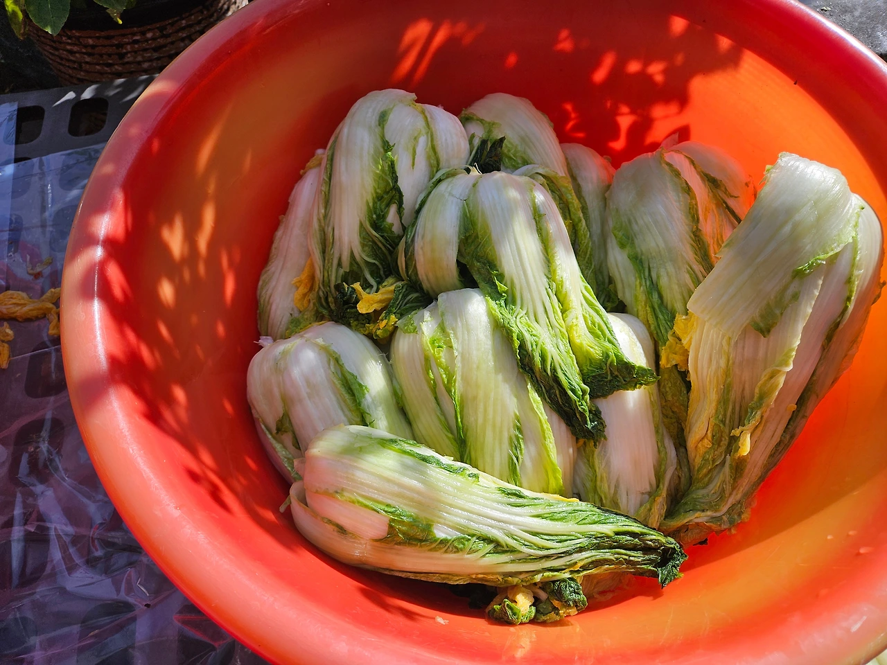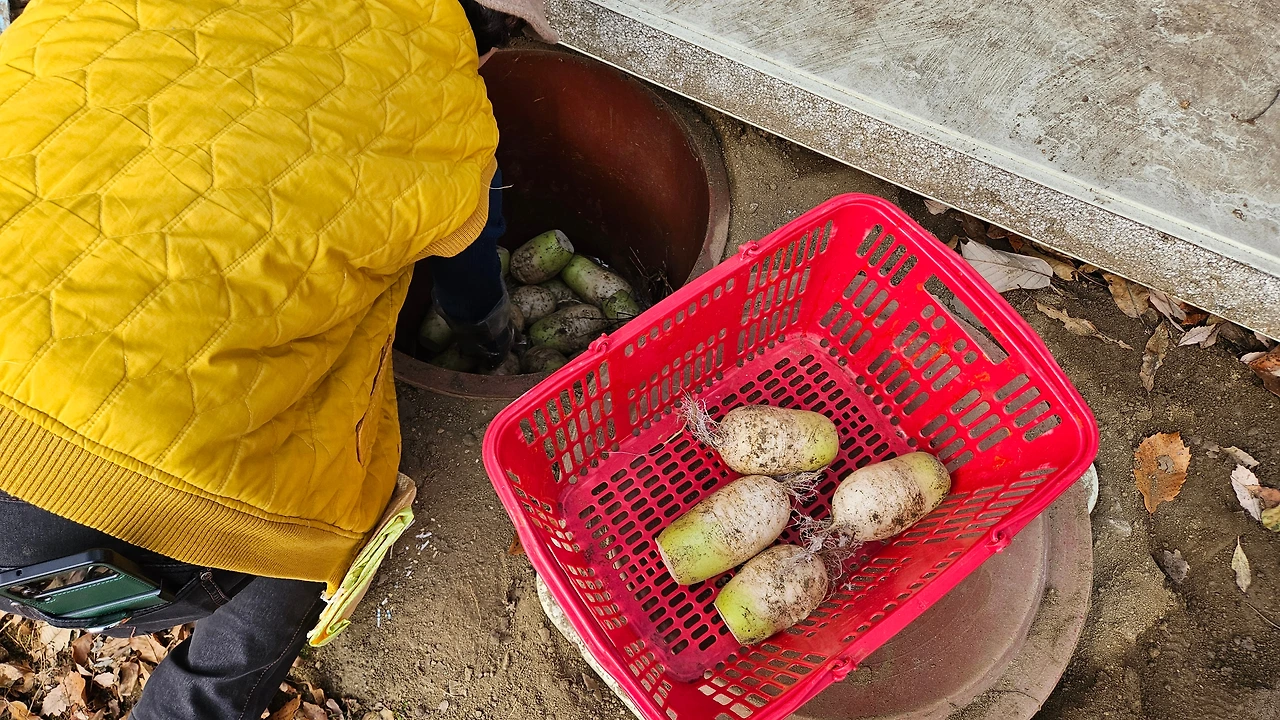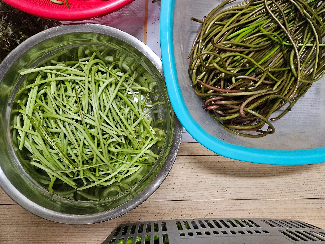 가끔 나도 밭을 둘러보면 언제 우리 농사가 이렇게 커졌나 싶어 놀랍다. 계속 이야기해 왔듯이 처음부터 이렇게 큰 규모로 시작한 건 아니었다. 지금은 수도 시설이 있어 수도꼭지만 틀면 물을 줄 수 있지만 말라가는 고구마에 줄 물을 댈 곳이 없어 집에서부터 실어 오던 때도 있었다. 말라버린 샘물에서 조금이라도 더 떠다 주려고 물통을 이고 지고 나르다 몸살이 났던 기억도 있는데 언제 이렇게 커다란 농장이 되었을까. 매년 조금씩 더하다 보니 어느새 여기까지 왔다. '올해는 김장 채소도 심어볼까?' 해서 무와 배추를 심기 시작했고, '올해는 고춧가루도 만들어 볼까?' 해서 고추를 심기 시작했다. 부모님께는 낯설었던 아스파라거스나 바질, 루꼴라 같은 서양 채소는 내가 계속 오래 먹고 싶다 해서 심었다. 수확한 아스파라거스로 명란 아스파라거스 파스타를 만들고, 바질로 페스토를 만들고, 루꼴라로 샌드위치를 만들었다. 이렇게 이름부터 낯선 작물이 아니라 익숙한 작물로 새로운 음식을 만들기도 했다. 그동안 소개했던 냉이 김밥, 완두 콩국수, 토마토 포카치아, 배추 파스타와 같은 건 그동안 엄마가 해왔던 방식에서 벗어나 새로운 방법으로 요리한 음식들이었다. 두 분은 낯선 재료와 음식을 만나도 싫은 내색이 없었다. 오히려 네가 해주니 이렇게 새로운 음식도 먹어 본다며 맛있게 먹어주셨다. 그 덕에 계속 새로운 요리법을 찾고 시도했다.