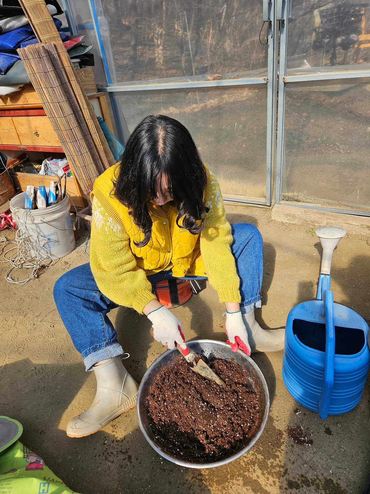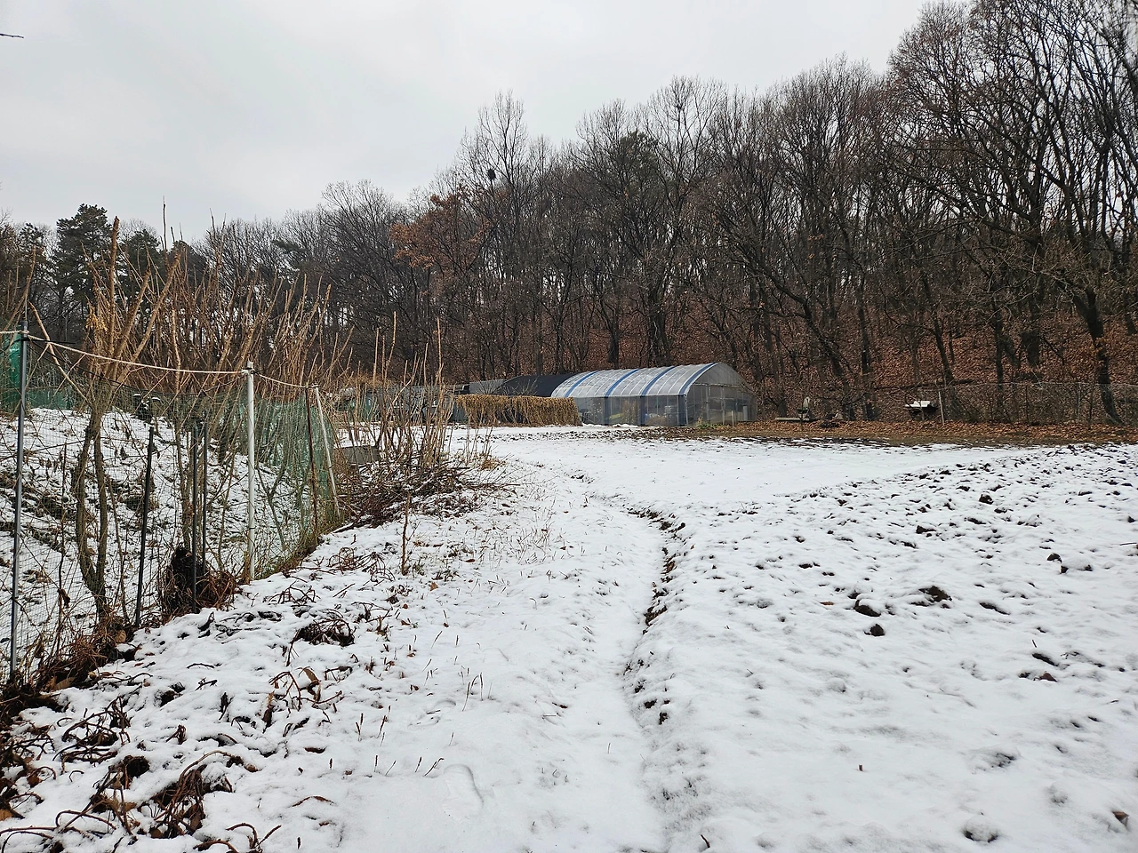 <리틀 포레스트>가 빵 먹고 싶으면 밀부터 심는 이야기 아니냐며 농담을 하던 때가 있었는데 가만 생각해 보면 지금 내가 하고 있는 일이 별반 다르지 않다. (실제로 빵 만드는 것에 재미를 붙이면서 밀을 키워볼까도 했지만 키우는 것보다 수확 후 제분을 맡기는 게 더 어렵다는 말에 포기했다.) 영화 속 주인공이 도시 생활에 지쳐 고향으로 돌아왔다면 나는 나의 모든 게 멈춰버린 순간에 어찌할 바를 몰라 코모리—영화의 배경이 되는 가상의 시골 마을—를 찾았다. 곧바로 세상에 뛰어드는 게 두려웠다. 매일 아침 수많은 사람들 사이에 끼어 내 의지와 상관없이 실려 다니고, 많은 사람들 사이에서 내내 긴장하고 있다가 집에 오면 쓰러지듯 잠이 드는 생활로 돌아갈 자신이 없었다. 그대로 방문을 닫고 들어가 버릴 수도 있었지만 다행히 나에게는 밭이 있었다. 오늘은 어쩐지 몸이 무거워서 가기 싫다 하면서 억지로 몸을 일으켜 나왔다가도 밭을 둘러싸고 있는 갈참나무 사이를 통과한 시원하고 상쾌한 산바람이 코 속으로 들어오면 금방 호미를 들 힘이 생겼다. 서늘한 공기에 몸과 마음이 모두 얼어 서로에게 짜증 내며 일을 미루다 가도 금방 딴 민트 잎에 꿀을 타서 만든 따뜻한 민트차 한 잔에 모든 게 녹아내렸다. 두근대는 마음으로 씨앗을 심고 매일같이 물을 주며 들여다보면 어느새 머리를 내미는 작은 새싹들과 함께 내 마음도 자라났다.