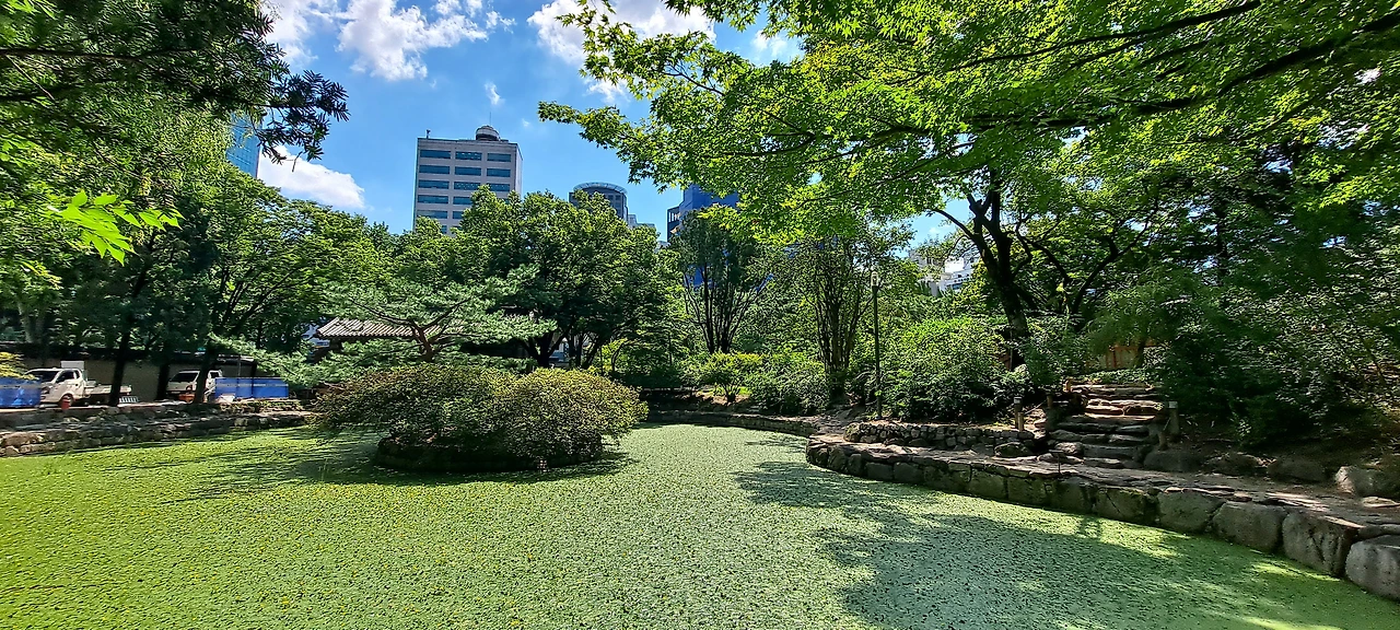 그러던 어느 날, 대한문을 넘어섰을 때 매번 향하던 방향이 아닌 오른쪽으로 살짝 꺾인 길이 보였다. 한번 가볼까? 하는 호기심으로 새로운 길에 들어섰을 때 아담한 연지가 눈에 들어왔다. 분명 이 자리를 오래 지키고 있었을 터인데, 그간 발견하지 못했던 까닭은 무엇일까?