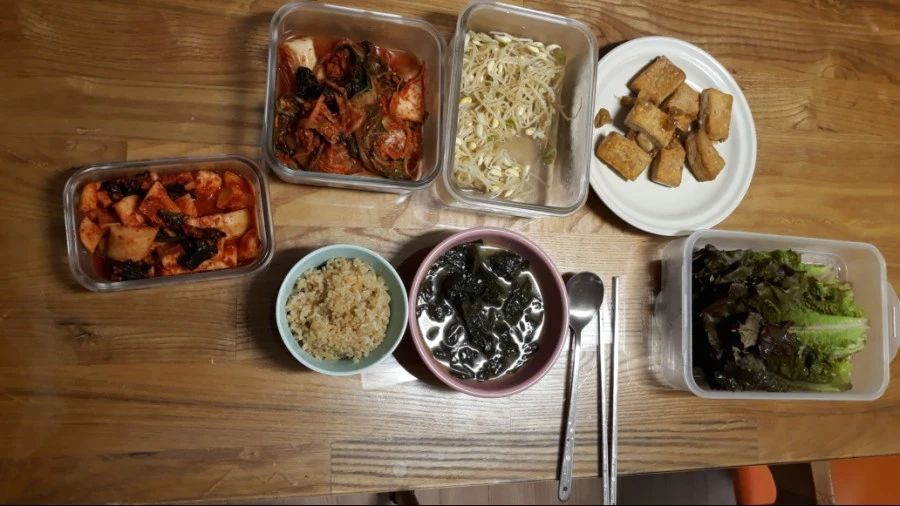 오늘은 일찍 출근하느라 도시락을 준비 못했다. 그래서 밤늦게서야 허겁지겁 저녁을 먹었다. 월, 화, 수요일은 그린스무디와 과일만 먹었기에, 어제와 오늘은 일반식을 했다. 사실 파가노 요법(건선의 자연치유 : 파가노 요법)에서는 김치(자극적인 음식)나 간장 두부조림(기름에 튀기는 음식),고추장 같은 음식은 피하라고 권한다.
