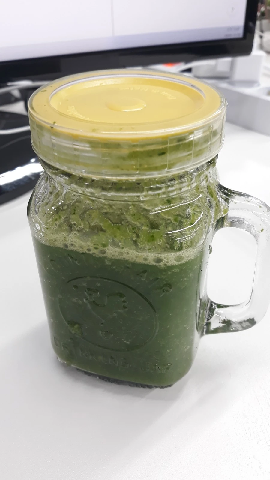 오전 07:43 그린스무디 반잔, 단감 1개