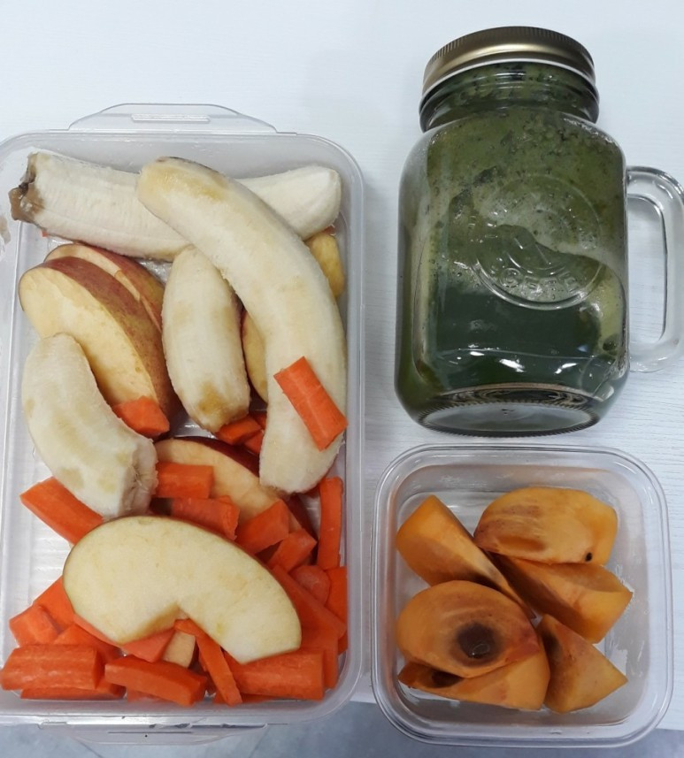 나는 보통 회사에서 별도의 식사시간을 가지지 않는다. 업무 중간중간에 조금씩 먹는데, 오늘은 준비한 음식이 많아서 다 먹지 못했다. 남은 음식은(당근과 사과 등의 과일) 냉장고에 보관한 채 퇴근했다.