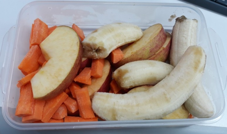 오후 04:44 ~ 06:00 사과 5조각, 당근 1개