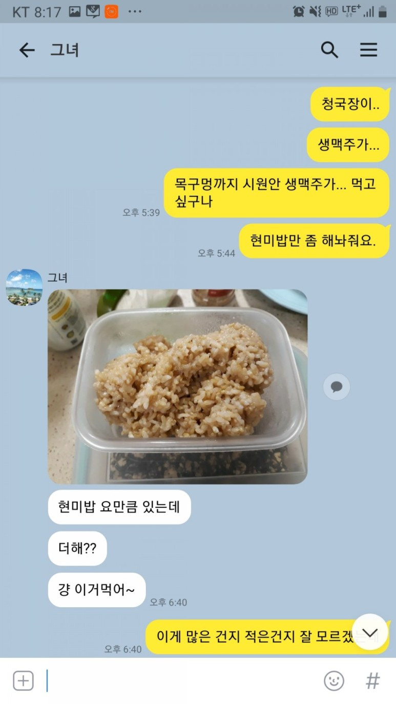 당근을 다 먹었음에도 계속 배가 고파 아내한테 메시지를 보내 저녁밥을 준비해 달라고 했다.