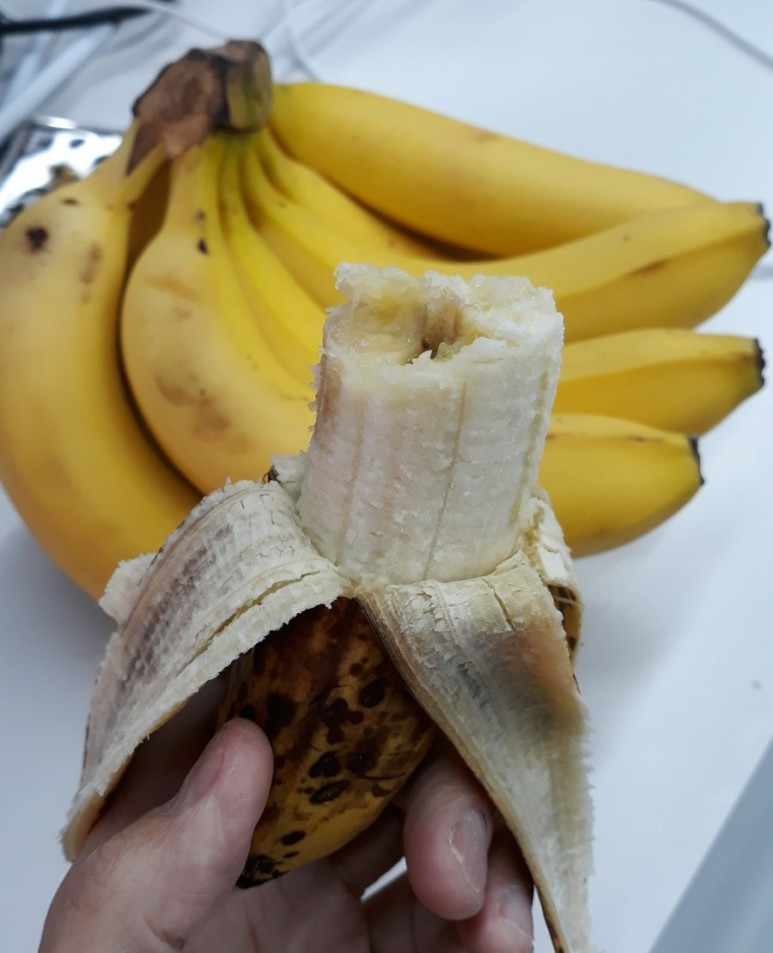어제 회사에 남겨둔 도시락이 있기에 오늘은 그린스무디만 준비해 갔다. 감 2조각을 먹고 출근했지만, 배가 고파 사무실에 도착하자마자 바나나를 흡입했다. 저 뒤의 덜 익은 바나나들은 후숙을 위해 미리 사무실에 가져다 놓은 녀석들이다.