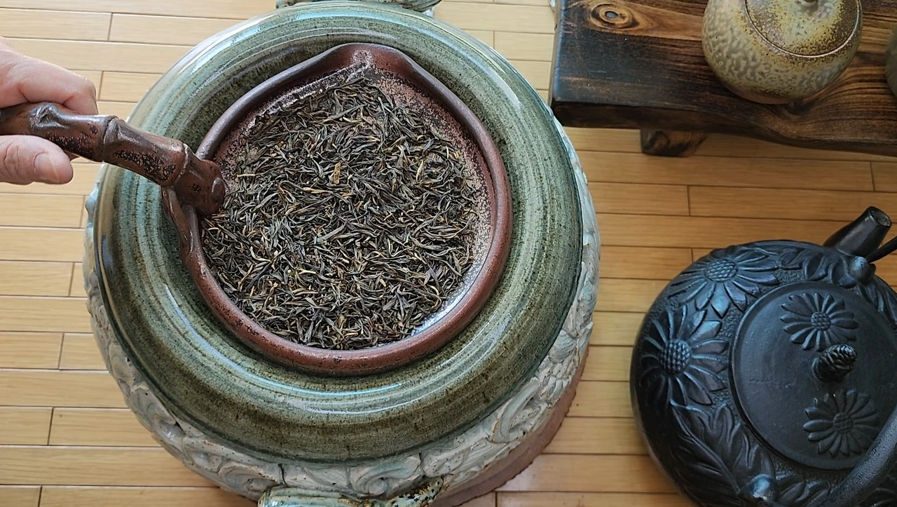 *묵은 녹차를 볶으면 발효차처럼 맛있게 즐길 수 있다. 같은 방법으로 오래 묵은 차의 맛도 살릴 수 있다.