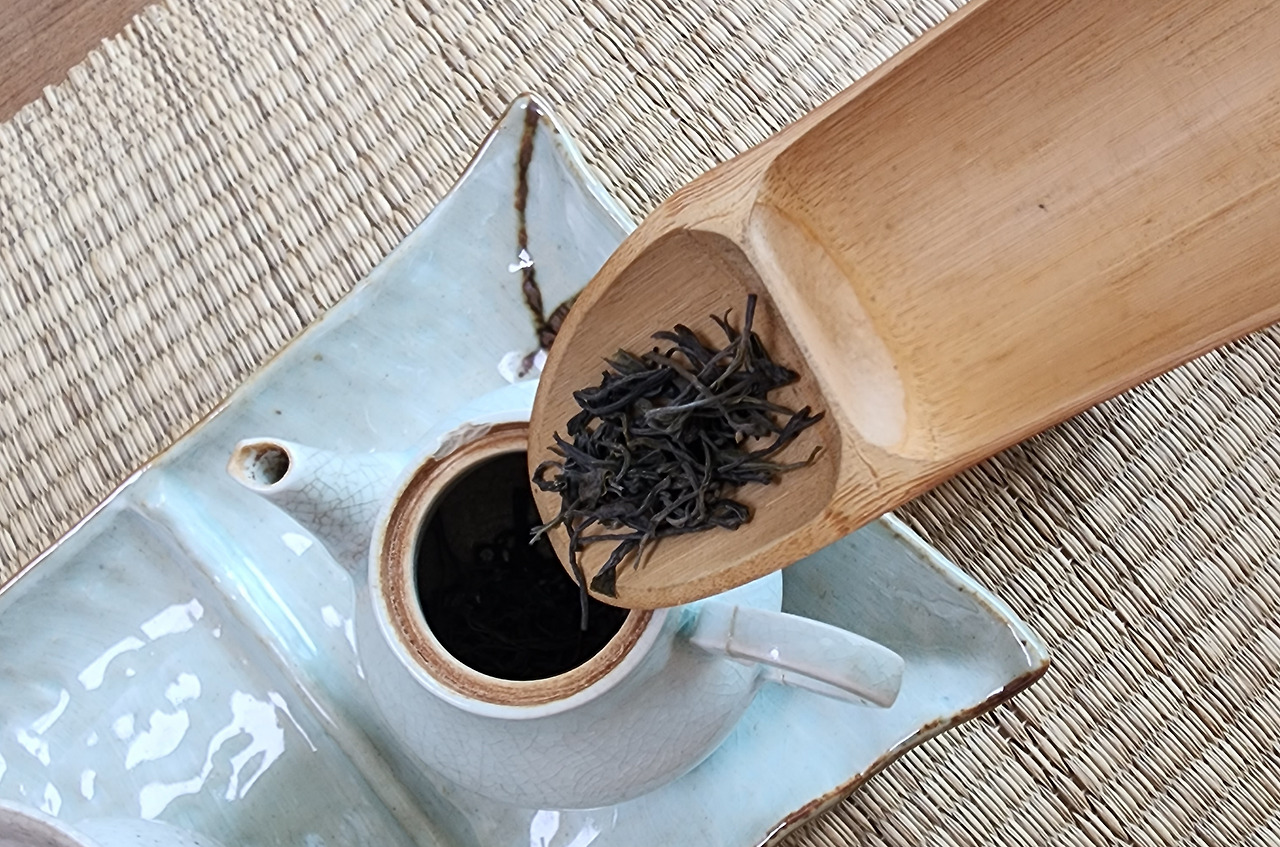 나는 도자기의 빛깔에 맞춰서 차를 우린다. 백자에 우리는 차들은 불발효 차인 우전과 10% 약발효한 백차다. 곡우 전에 따서 덖은 우전과 약발효 차인 백차는 여린 잎차다. 시들림과 뜨거운 온도에 덖이는 과정 속에서 살청이 되면서 마른 잎이 가두고 있던 향기는 찻잎이 적절한 온도의 물을 만났을 때 폭발적으로 발산된다. 마실 때마다 절로 정갈해지는 느낌도 그 고급스러운 차향과 부드러운 목 넘김 때문이다. 그것을 경험하고 나면 다미의 극치를 잊을 수 없을 것이다. 그 외에 맛이 섬세하며 성질이 온순한 댓잎차를 백자 다관에 우린다. 어린 죽순을 덖어 만든 댓잎차는 달달하고 맑다. 밀도가 좋고 침출이 원활하여 여러 번 우려먹을 수 있다. 독은 없고 청혈작용이 뛰어나다. 끓는 물을 그대로 사용하되 시간을 끌지 않고 곧바로 침출해도 충분히 우러난다.