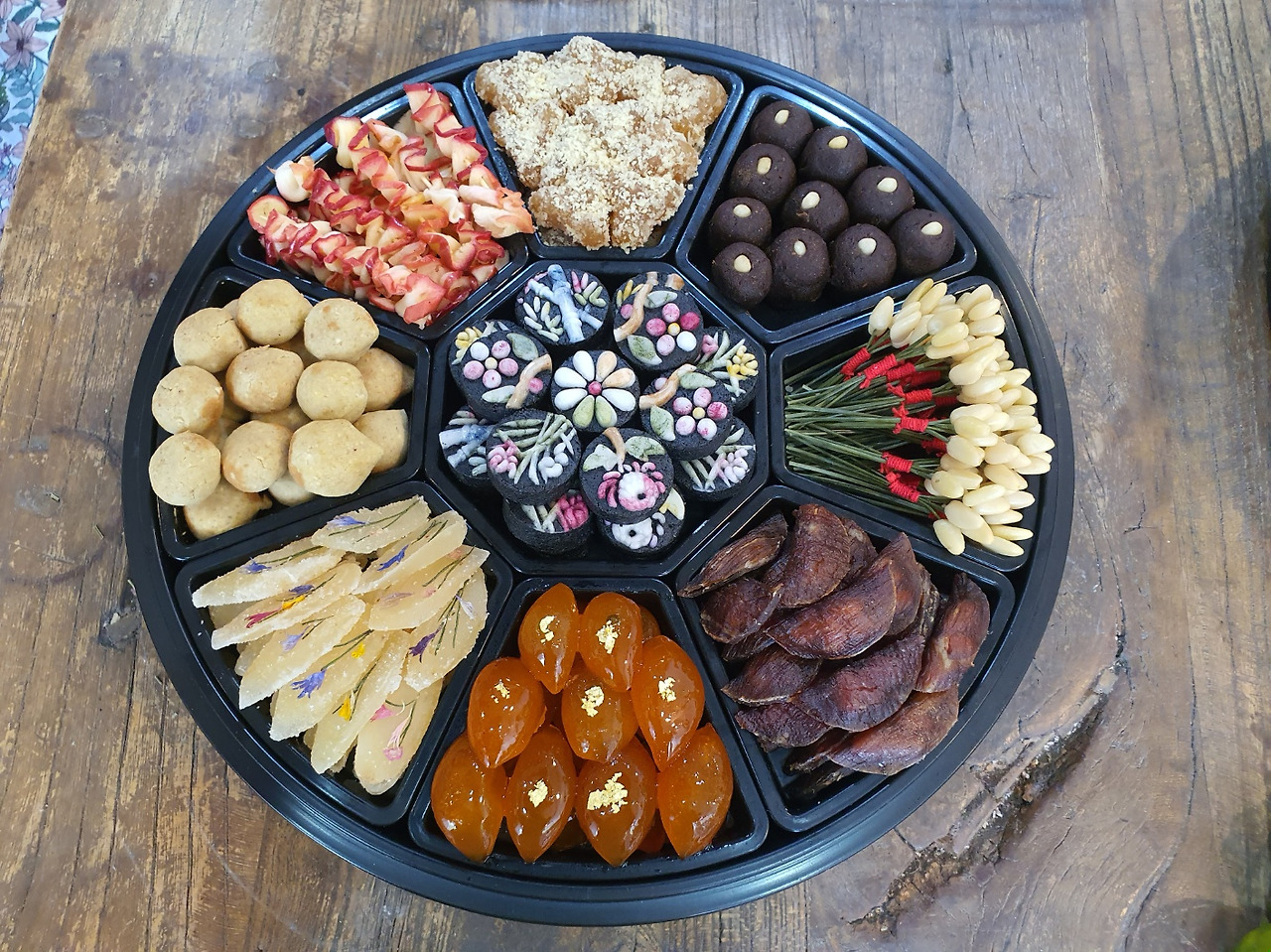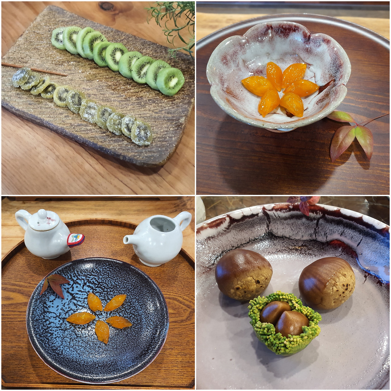 평소에 차 모임을 위해 나는 과일을 말린 건과나 열매를 말린 견과, 다식으로 좋은 한과나 약과와 같은 정과를 준비해두었다가 낸다. 냉동보관 했다가 한 시간 전에 상온에 꺼내두면 말랑하게 바로 먹을 수 있는 오메기 떡, 인절미, 찹쌀모치 같은 것도 차회 중간에 내기 좋고, 모시 떡이나 송편도 1~2분 데우면 맛있게 즐길 수 있는 좋은 다식이다. 신선한 제철 과일도 애용한다.