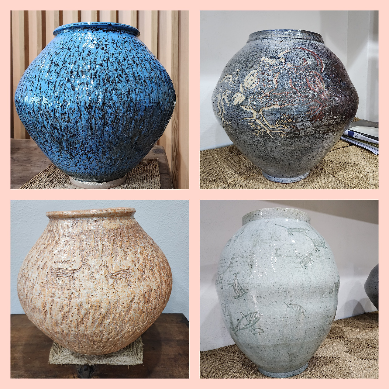 위쪽부터 아래쪽까지 둥글둥글한 달항아리를 쓰다듬으며 말씀하셨다. “만삭의 생명을 품은 달항아리에요, 새로운 달항아리, 민요에서 노래한 서민들의 달항아리, 거친 세상에서 선하게 살아간, 풍상이 느껴지는 사마리아 여인 같은 달항아리입니다.”