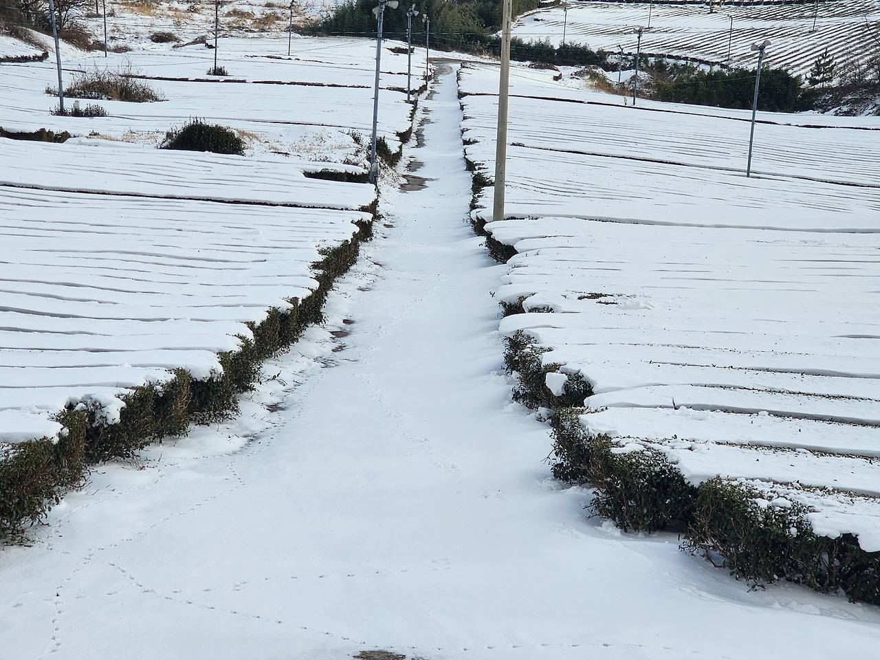 황금박쥐보호구역으로 지정된 성정마을이라니, 궁금증을 잔뜩 안고 찾아간 마을은 휑하게 빈 느낌이었다. 대나무가 빽빽한 야산에는 차밭은커녕 제다원 비슷한 것도 보이지 않았다. 월인천강 나비황차원이 이런 곳에 있을리 없다는 생각을 하면서도 마을길을 걸었다. 눈에 푹푹 빠지면서. 차밭 찾기를 포기하고 내려와 차를 돌리려는데 산 쪽에서 노인 한 분이 내려오셨다. 용기를 내어 여쭸더니 안내해주신다.