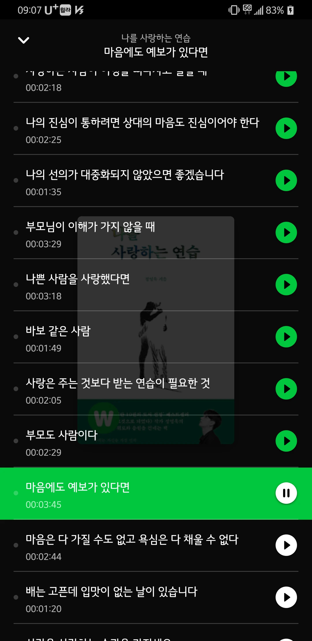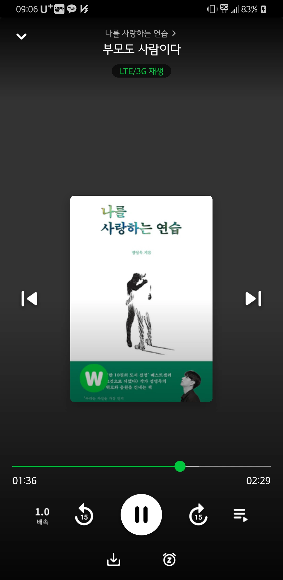 오디오북을 듣고 있는데 와닿는 내용들이 많은 거야. 일반적인 일상을 글로 잘 나타낸 것 같아. 부산에 도착할 때까지 들을 거야. 약 3시간이야.