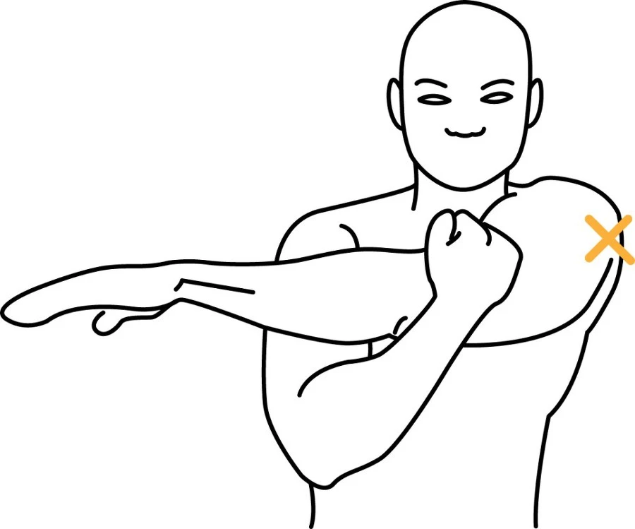 ▷ 가슴을 과도하게 내밀지 마십시오. 이 동작의 목적은 어깨관절을 부드럽게 만들어 주는 것입니다.