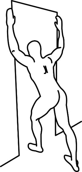 ▶ 손으로 벽을 단단히 짚고, 몸을 기울여 줍니다.