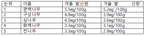나무의 피톤치드 발산량은 낮 12시부터 오후 2시에 최고에 이른다.