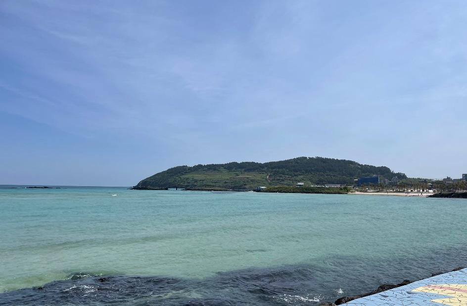 함덕해수욕장. 관광객들에게는 하와이, 괌에 버금가는 맑고 푸른빛을 선사하는 곳이다. 서우봉이 보초를 서고 파도의 반짝임을 지켜준다.