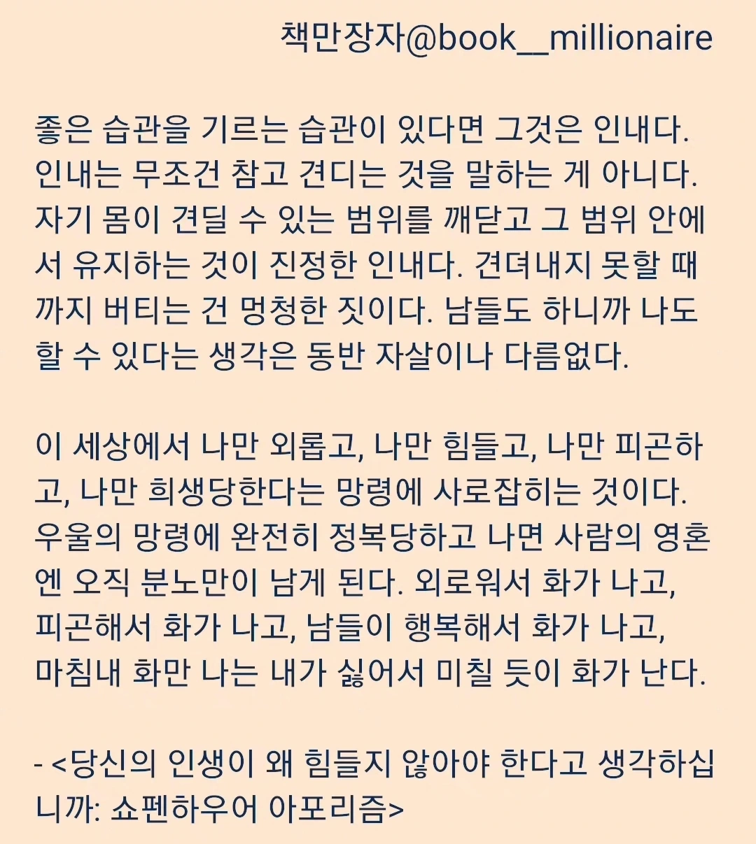 2. "삶이 그대를 속일지라도, 슬퍼하거나 노하지 말라! 우울한 날들을 견디면 믿으라, 기쁨의 날이 오리니." - 알렉산드르 푸시킨 3. "삶은 10%는 당신에게 일어나는 일이고, 90%는 당신이 그것에 어떻게 반응하는가이다." - 찰스 R. 스윈돌 4. "성공은 최종적인 것이 아니며, 실패는 치명적인 것이 아니다: 계속되는 용기가 중요하다." - 윈스턴 처칠