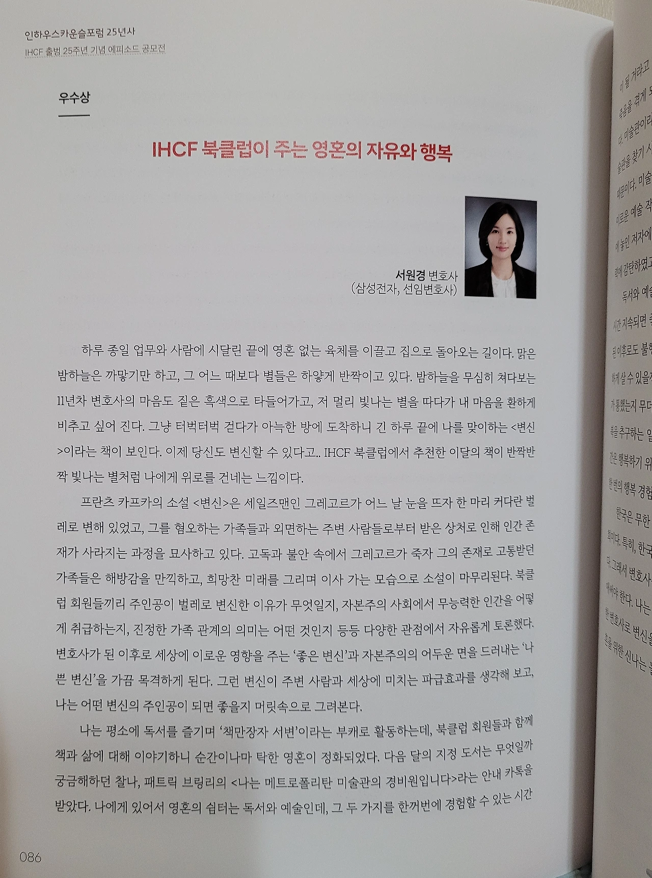 <IHCF 북클럽이 주는 영혼의 자유와 행복> - 서원경 변호사