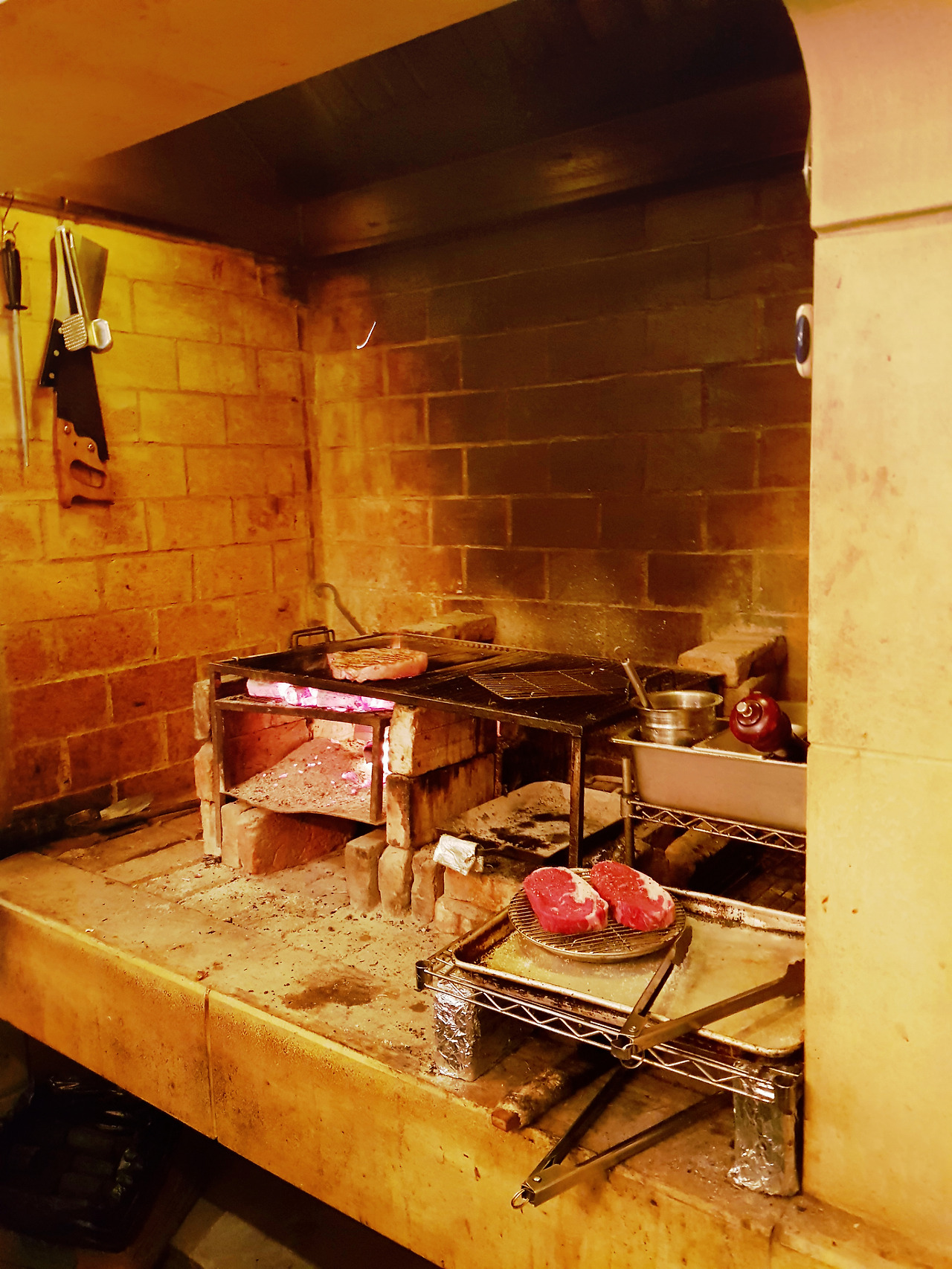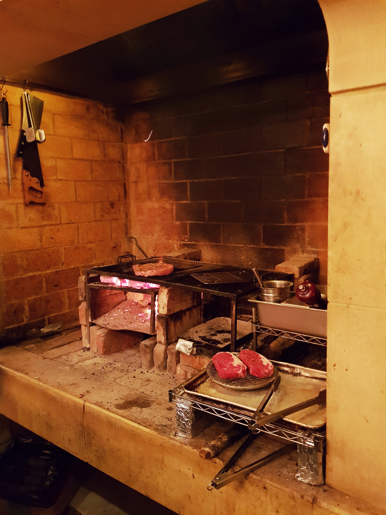 이곳의 셰프들은 돌가마에서 숯을 사용해 해산물이나 스테이크를 호쾌하게 구워준다. 우리가 주문했던 그릴에 구운 등심스테이크는 스테이크 덩어리 통째가 아니라 먹기 편하게 썰어서 나온다. 미디엄 레어로 주문해도 육즙이 많지 않아 부담이 적고, 루꼴라와 파르마산 치즈를 아래 깔아서 자연스럽게 간을 맞추어 건강한 짭조름함과 함께 고소하게도 먹을 수 있다.