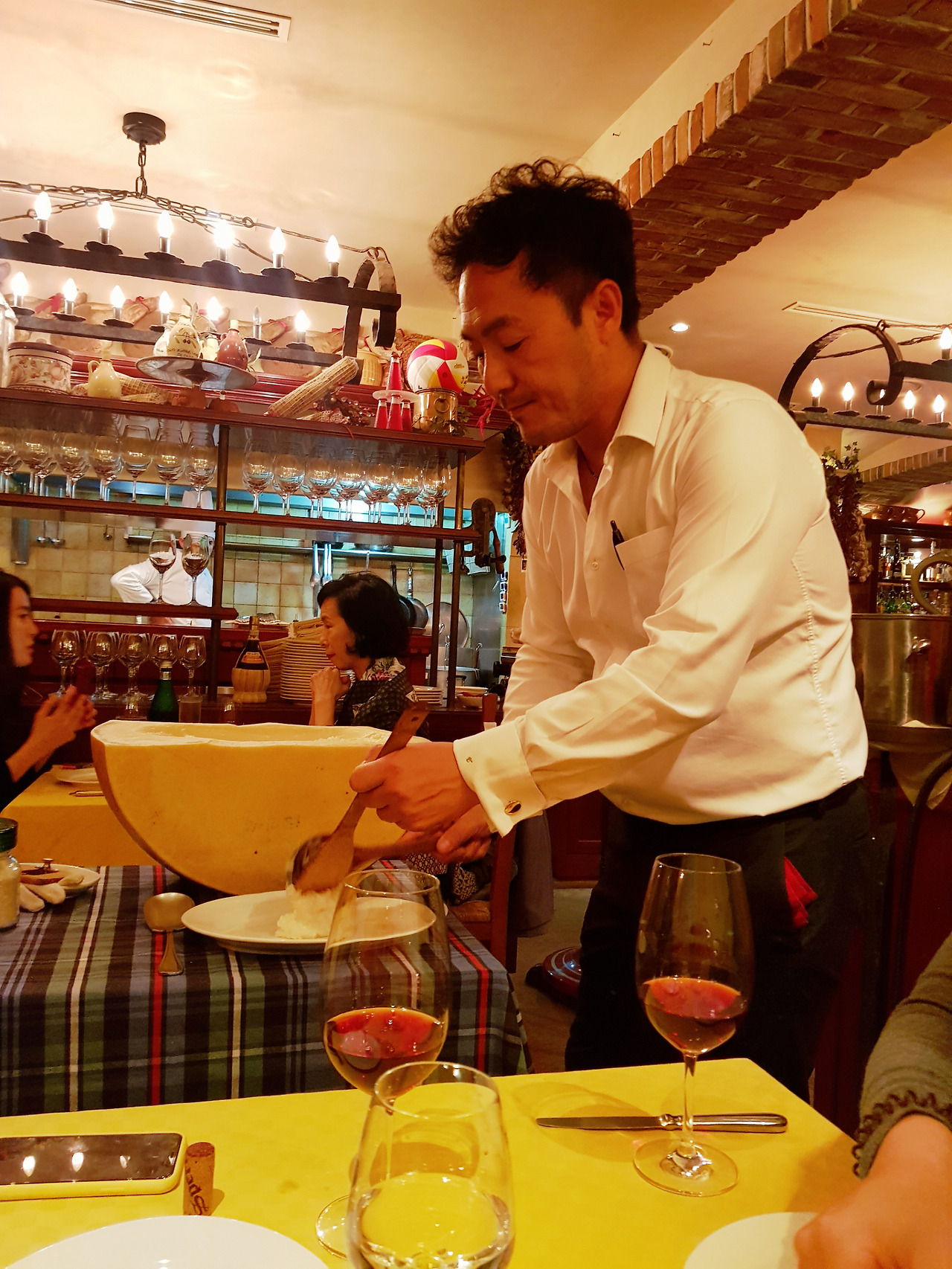 인기메뉴인 파르미자노 리조또는 치즈강국인 이탈리아에서 공수한 파르마산 치즈에 뜨거운 쌀알을 섞어 조리하는 모습을 테이블 옆에서 직접 시연한다. 파르마산 치즈는 엄청 단단해서 정을 이용해 돌을 쪼개듯이 자른다는데, 파르마산 치즈의 안을 파내어 그 안에 재료를 넣고 리조또를 만들어 주는 구경스러움으로 인기가 많다. 빠른 손목스냅으로 정성스레 음식을 조리하는 모습에서 호감도 상승하는 효과가 있다. 얼핏 보기에는 죽같은 비주얼인데, 먹어보면 우유와 섞은 크리미하고 부드러운 느낌으로 아무런 군더더기 없이 깔끔한 스타일의 리조또이다. 절제된 심플함에서 오는 은은한 매력이 있다.