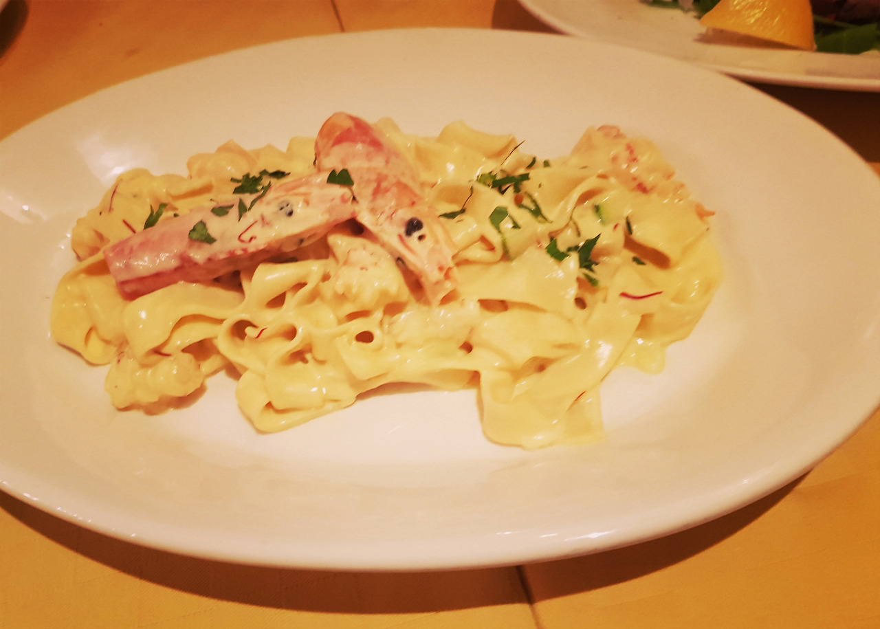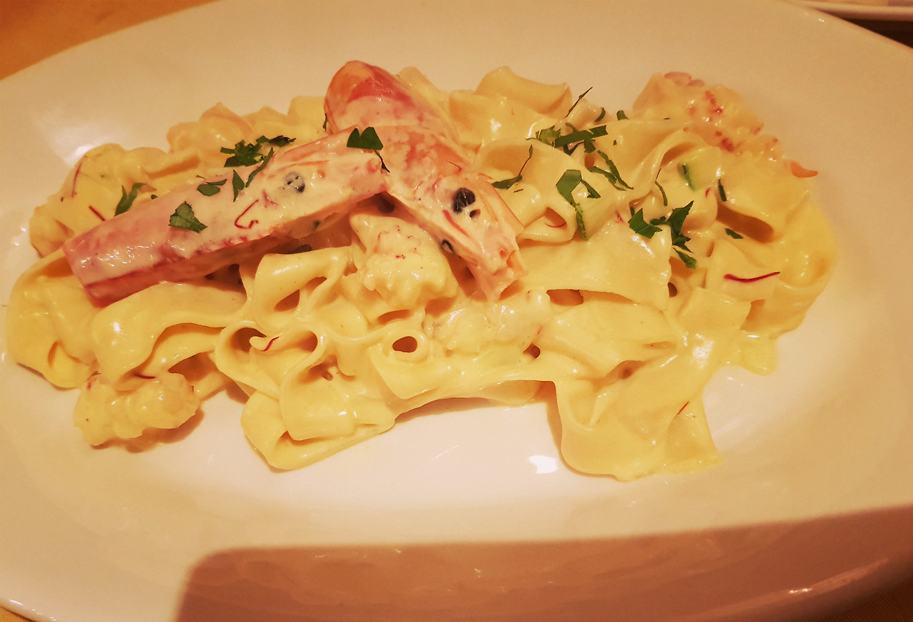 페투치네 알라 키아쏘는 왕새우, 쥬키니, 샤프란, 크림을 섞은 파스타이다. 세계에서 가장 비싼 향신료라는 명성을 가진 샤프란은 음식의 풍미를 더해준다. 독특한 향이 약간 쓴 맛을 느끼게 하지만, 크림 파스타의 느끼함을 상쇄시켜 주는 것이 특징이다.