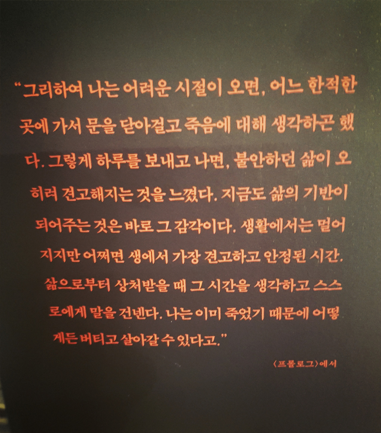 -삶이 곧 죽음이라면, 그리하여 이미 죽어 있다면 여생은 그저 덤이다.