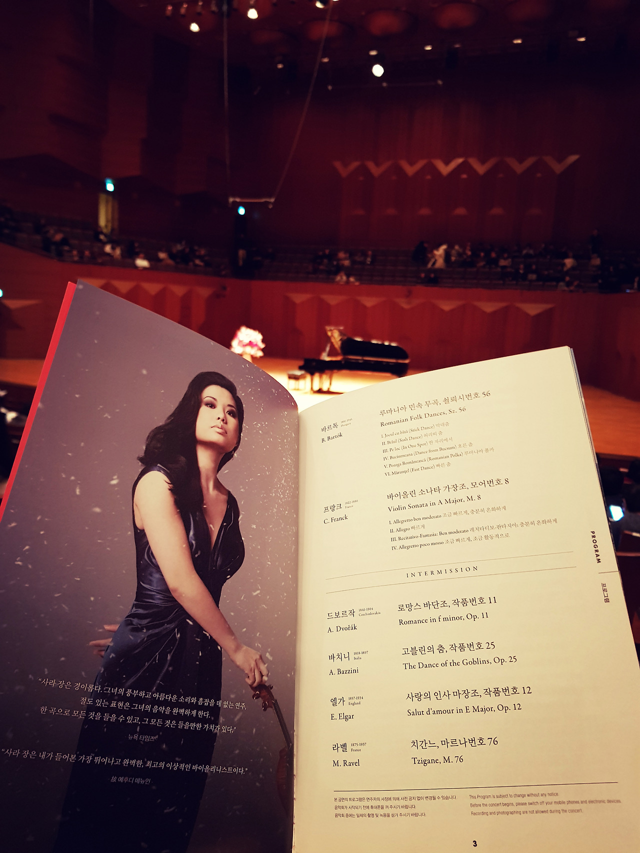 이번 공연의 레퍼토리는 '원초적 민속성'과 '도회적 세련미'로 압축된다. 사라장의 독주회인만큼 바르톡 ‘루마니아 민속 무곡’, 프랑크 '바이올린 소나타 가장조', 엘가 ‘사랑의 인사’, 드보르자크 ‘로망스’, 바치니 '고블린의 춤', 라벨 ‘치간느’ 등을 들려주며, 때로는 서정적이고 잔잔하게, 때로는 웅장하고 화려하게 바이올린의 선율이 마음속 깊은 곳까지 흘렀다. 특히, 내게 가장 익숙한 선율인 '사랑의 인사'는 달콤하고 단정한 정서가 살아 있어 더욱 빛나는 연주였다.