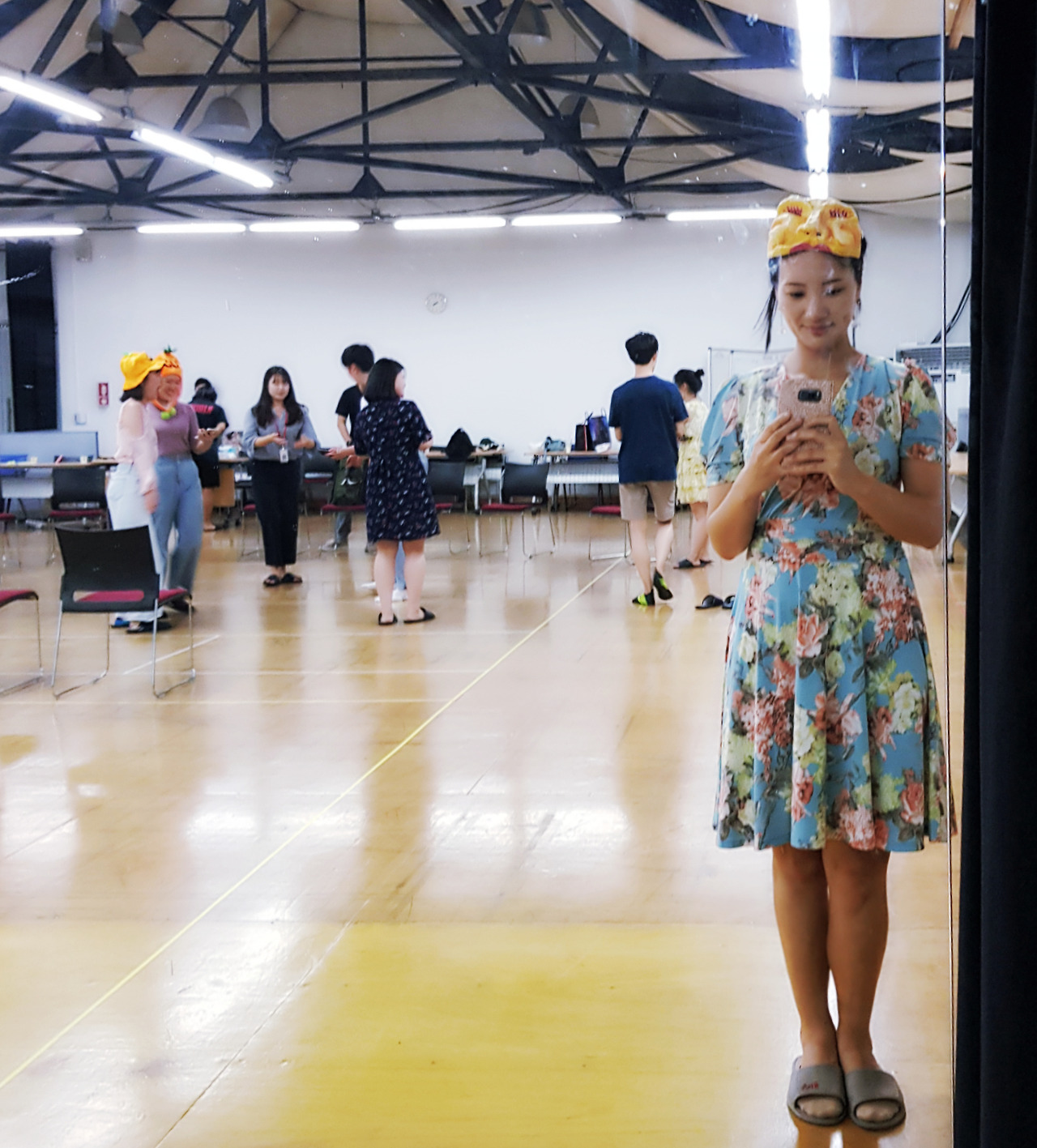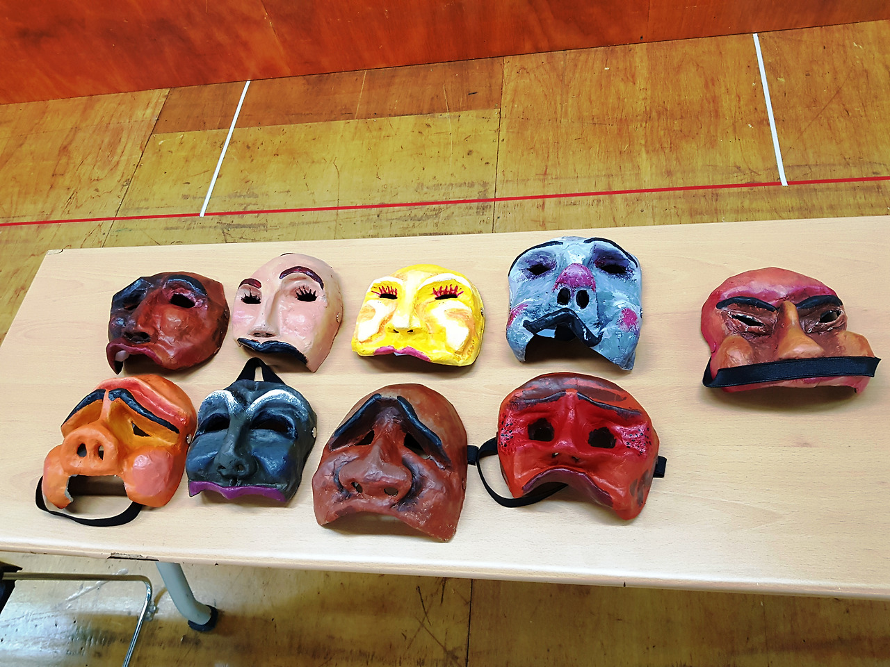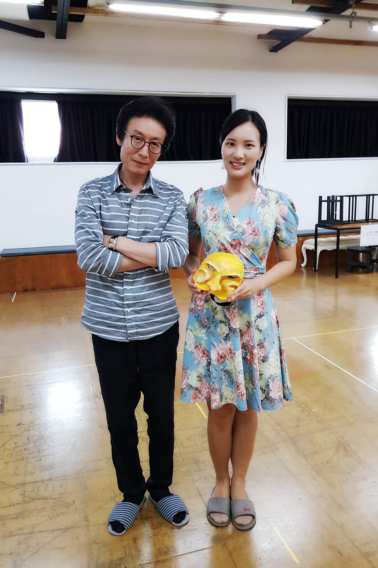 먼저 9개의 가면마다 눈코입의 크기, 눈썹의 모양, 주름의 굵기와 길이, 광대의 굴곡, 골격의 형태가 달라서, 가면을 보자마자 어떤 인간의 특성이 떠오르는지 살펴보는 시간을 가졌다. 심술궂어 보인다, 주눅들어 보인다, 성나 보인다 등등..그 특징을 파악하고 그에 맞는 목소리 톤과 움직임을 연구한다. 그리고 각자 가면을 쓰고는 갑자기 주어진 상황에 따라, 즉흥적으로 대사를 치고 연기를 해보는 시간을 가졌다. 임도완 연출님께서 관객을 바라보는 타이밍, 배우들의 호흡조절, 대사와 움직임의 임팩트를 직접 설명해 주시고, 나를 포함한 9명 정도의 관객들을 대상으로 하나하나 지도해 주시니 곧바로 연기가 조금씩 향상되는 걸 경험할 수 있었다.