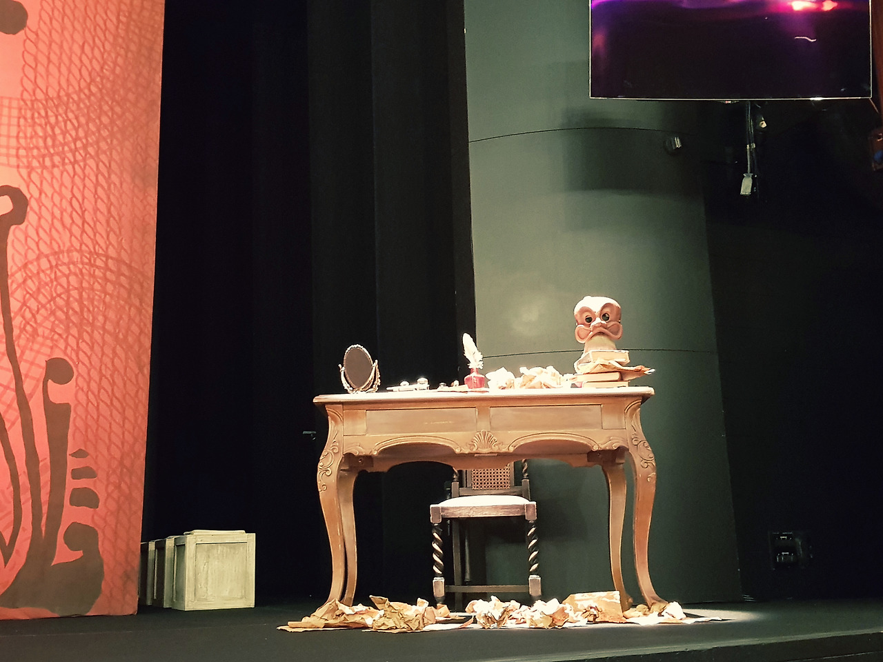 이렇게 <스카팽>이 제작되는 과정을 1시간이나마 몸소 체험해 보고는, 명동예술극장에서 실제 배우들의 공연을 관람하고 있으니 그 몰입도가 배가 되었다. 역시 전문배우들은 가면을 쓰고도 몸짓과 표정으로 표현하는 능력이 놀랍긴 하였다. 극의 전개도 세심하게 관찰하면서, 나와 그분들의 연기력 차이를 비교해 보는 재미도 있었다.