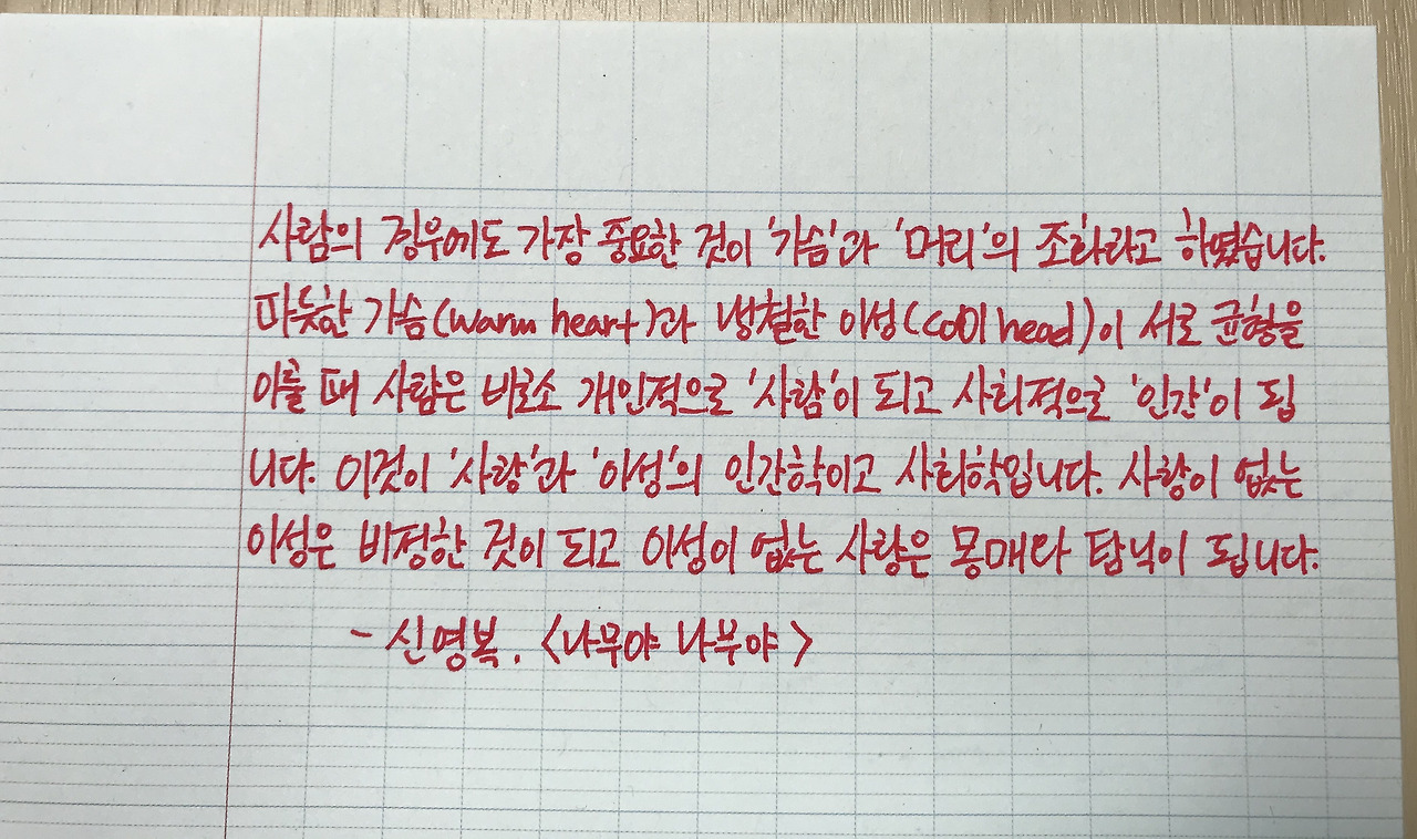 고 신영복 선생님의 <나무야 나무야>를 필사하며