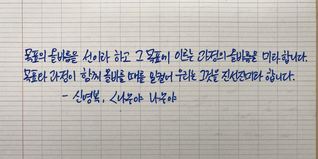 필사를 마치고 나니 손목이 조금 뻐근했지만 가벼워진 마음의 무게가 더 크게 와 닿았다. 이래서 내가 필사를 못 끊지, 라며 책을 덮었다. 나는 언제쯤 신영복 선생님처럼 부드럽지만 힘이 있는 글을 쓸 수 있을까. "감정과 과거를 다스릴 줄 알아야 진정으로 강한 사람"이라던 영화 - 액트 오브 밸러 - 의 대사처럼 감정과 과거를 다스리려고 노력중인데 그게 잘 안된다. 포기하지 않고 꾸준히 노력하다 보면 언젠가는 되겠지. 끝없는 '자기 훈육'을 강조했던 스캇 펙의 말이 떠오른다. <아직도 가야할 길>을 다시 읽을 때가 된 것 같다.