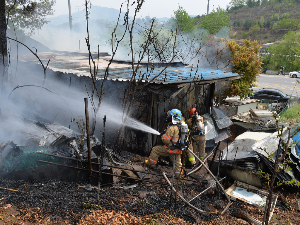 “화재 출동! 화재 출동! 명지동 농막 화재!”