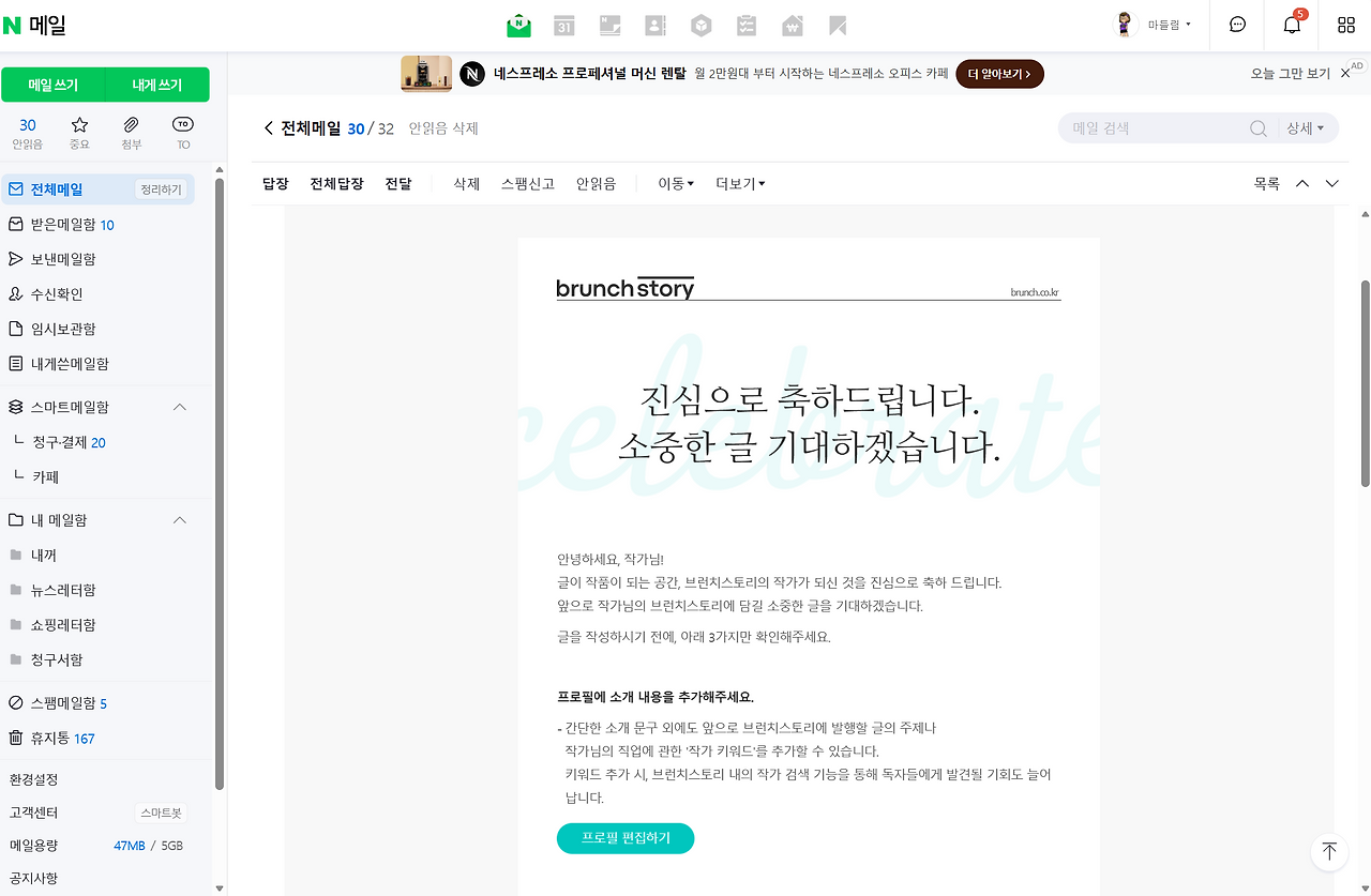 축하메시지를 한 자 한 자 확인하는 내내