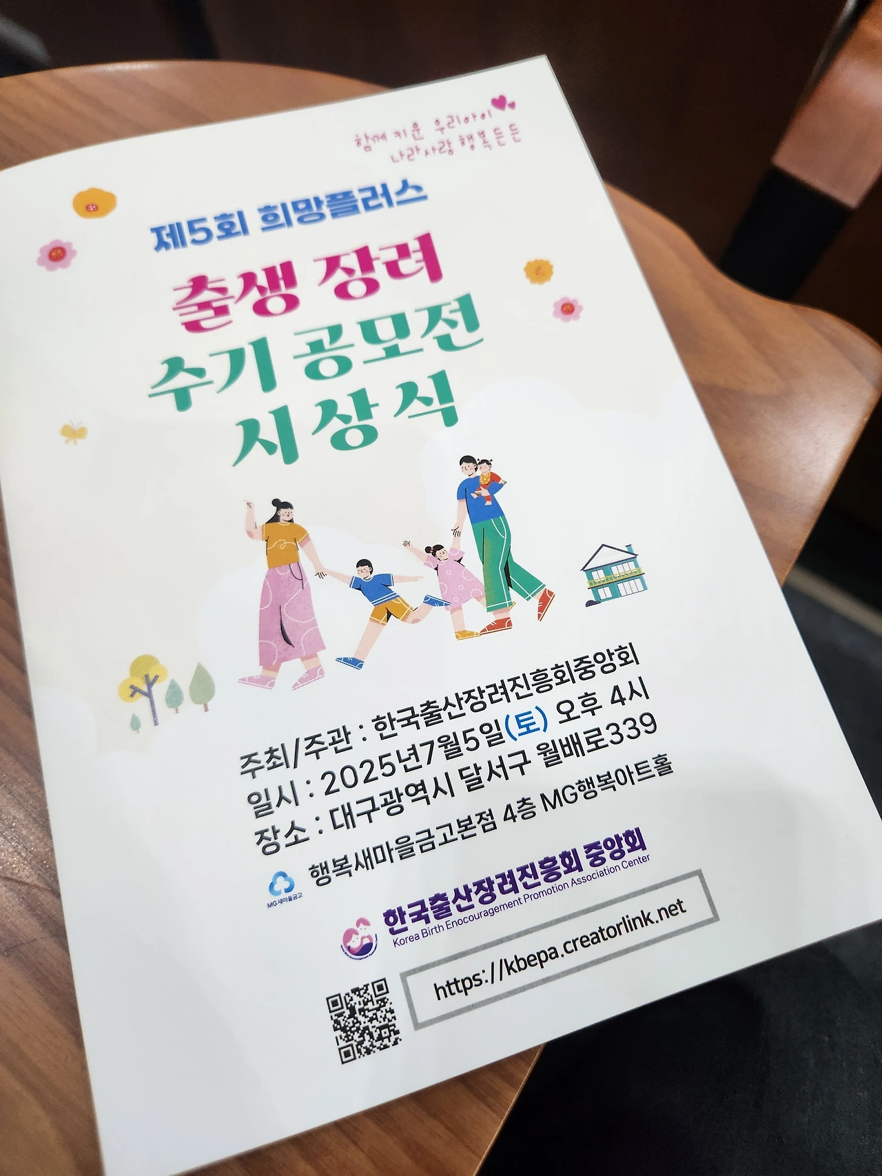 오늘 대구에서 열린 제5회 희망플러스 출생 장려 수기 공모전 시상식 현장을 다녀왔습니다.