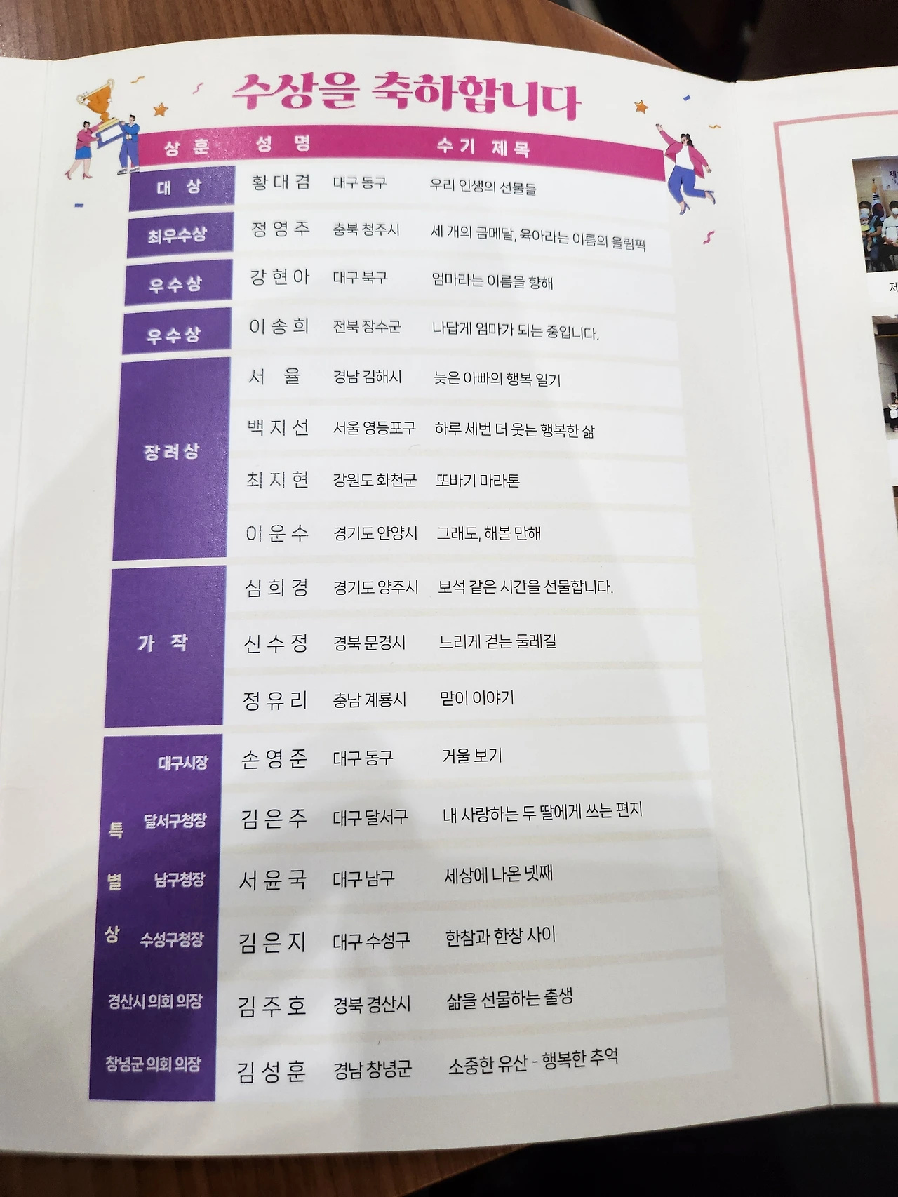 조심스럽게 꺼내어 쓴 이야기가 장려상이라는 큰 상으로 돌아왔고, 그 기쁨을 직접 마주할 수 있어 더욱 뜻깊은 시간이었습니다.