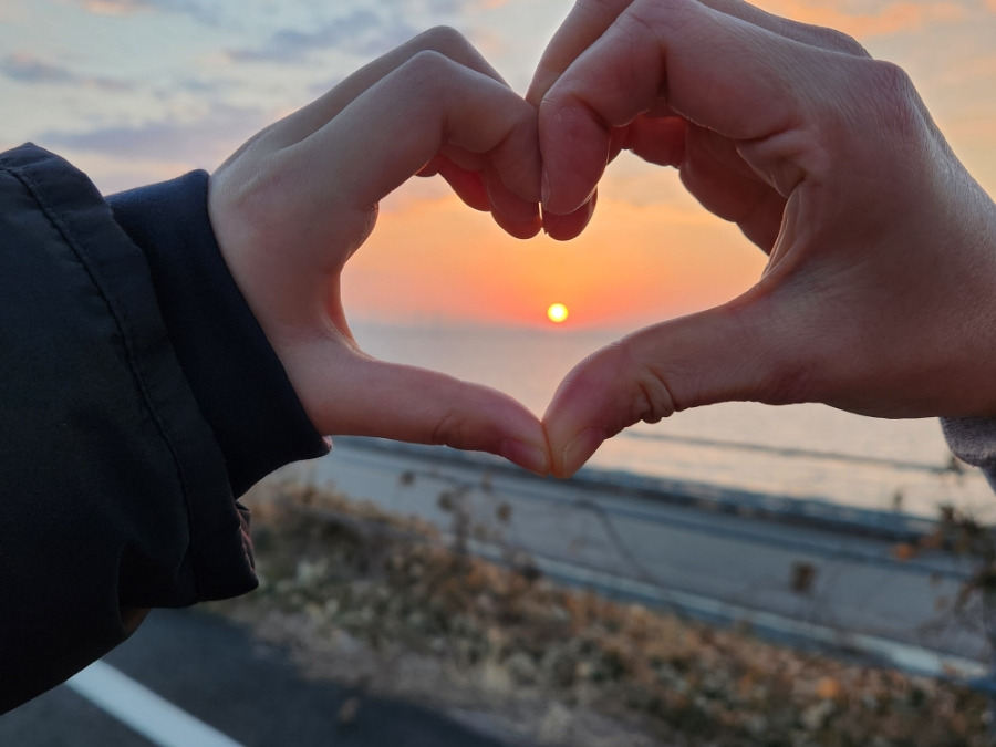 사진은 아내와 둘째 아이가 함께 만든 손하트 속으로