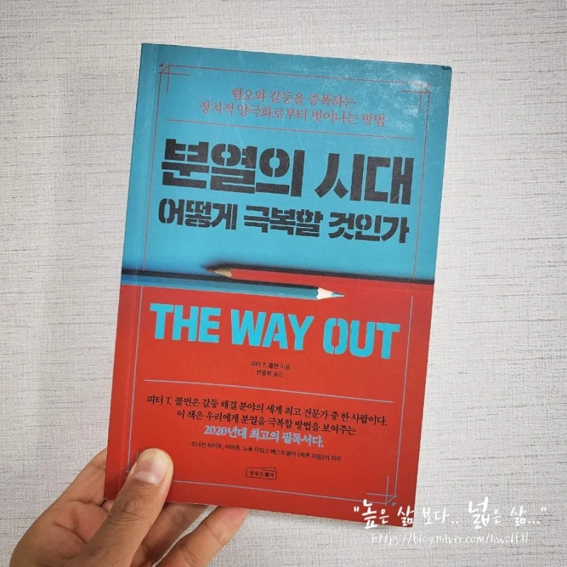현대 사회를 여러 가지 사회로 정의를 하지만 그중 한 가지는 바로 '분열의 시대'이다. 우리나라 사람은 두 명만 모여도 정당이 세 개나 생긴다는 말이 있다. 바로 '니당, 내당, 우리당'이다.나의 지인 중 한 명은 "60세가 넘어가면 투표권을 주면 안 돼. 늙은이들이 나라를 다 망쳐!"라는 격한 말을 늘 달고 산다. 자신이 진보임을 자처하고 더 나은 포지션에서 생각하고 행동을 하는 사람인 양 말한다. 그리고 반대 입장에 있는 사람들은 덜 이성적이고 생각이 없는 바보 취급을 하며 강한 혐오감을 드러낸다. 그러나 이러한 분열은 정치에만 국한되지 않는다. 바로 우리의 가정, 직장, 관계 등 그 어디에서든 존재한다.