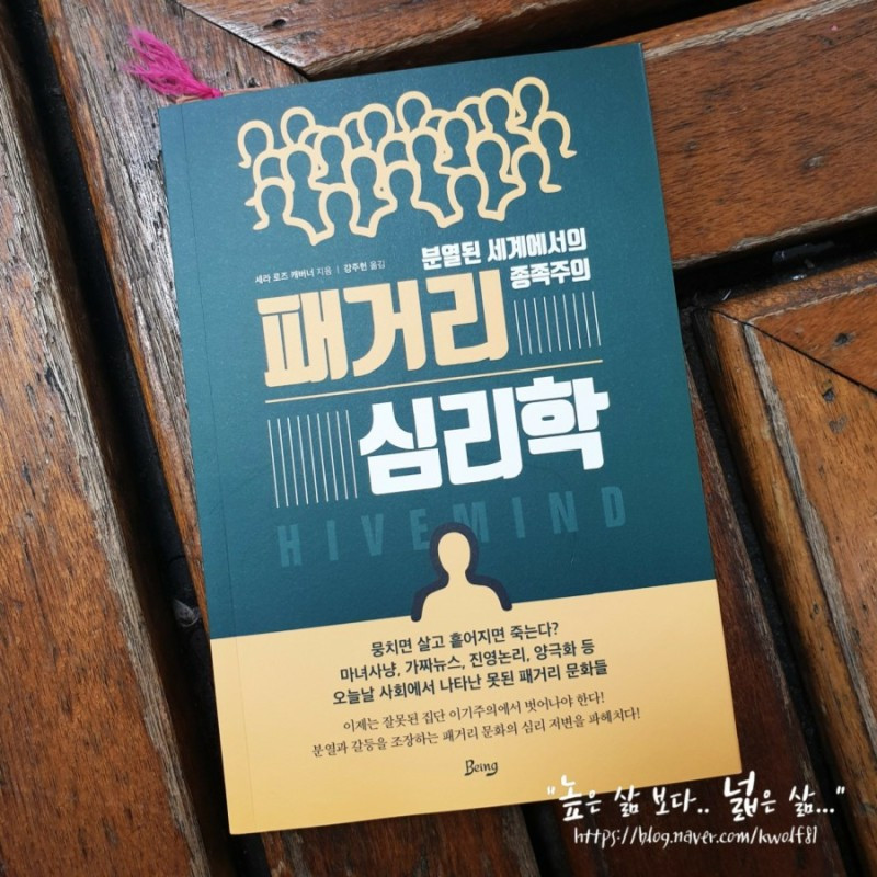 <패거리 심리학(원제 : 하이브 마인드)>은 사회적 동물인 인간이 끊임없이 타인과 동조화하며 생각과 정서, 기억을 공유함으로써 마치 하나의 생각을 가진 것처럼 행동하는 현상인 '하이브 마인드'에 대해 다루고 있다. 하이브 마인드란 일종의 집단의식이나 집단 지식을 뜻한다. 이러한 집단주의적 성향은 인간이 내집단을 형성하고 서로 협력하며 생존하도록 도움을 주었다. 그러나 한편으로는 내집단에만 매몰되어 진영논리, 마녀사냥, 가짜 뉴스, 양극화 등의 못된 패거리 문화로 인해 점점 공감 능력이 떨어지고 타인을 이해하는 법을 잊어버리고 있는 것이다. 특히 스마트폰과 소셜미디어의 발달은 이러한 현상을 더욱 강화시키고 있다.