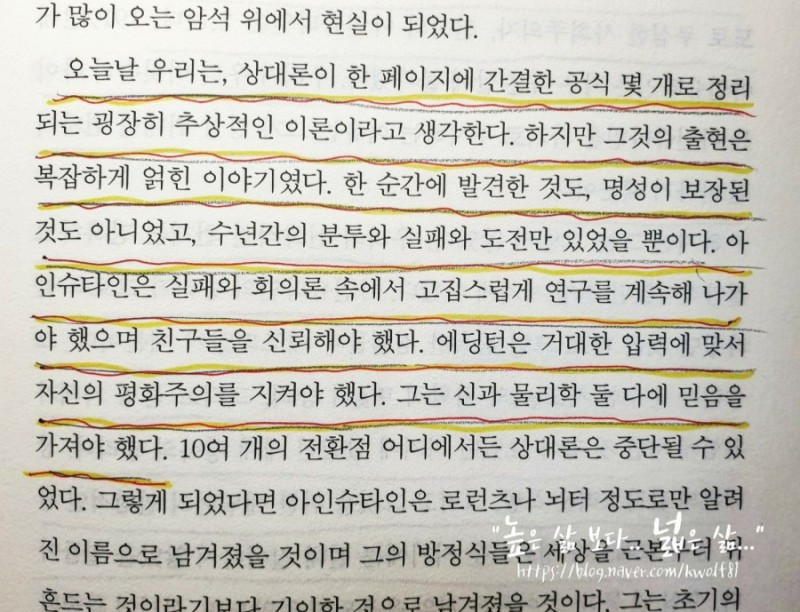 아인슈타인은 온갖 종류의 고투를 겪으며 싸워야 했다. 여기에는 수학적, 개념적, 개인적 투쟁, 그리고 종국에는 전쟁까지 포함돼 있었다.