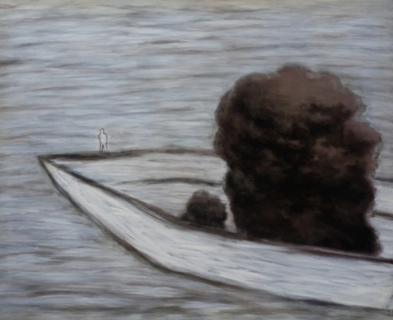 먹구름을 잔뜩 싣고 흘러가는 조각배 하나가 있다. 배 위에는 실루엣으로만 남은 왜소한 사람이 커다란 먹구름 덩어리에 자리를 내주고 끝으로 내몰렸다. 한 점의 바람, 한 번의 파도에도 금세 꼬꾸라질 듯 위태롭다. 사방을 둘러봐도 바다밖에 보이지 않는데 그는 무엇을 보고 있는 걸까? 자기보다 몇 배는 더 큰 먹구름을 싣고 어디로 가는 걸까? '슬픔은 짐이 무거운 자의 것'이란 말이 떠오르는 그림이다. 가만 들여다보니 손은 무심히 호주머니에 넣은 듯하고표정은 사라지고 없다. 무엇이 그를 이렇게 아슬아슬하게 서 있게 만든 걸까. 그가 실은 이 짐을 나도 잘 알 것 같다. 그것은 걱정, 근심, 염려 덩어리들, 번뇌 종합세트이다. 그는 이 무거운 쓰레기들을 처리할 해우소를 찾고 있는 것일까.