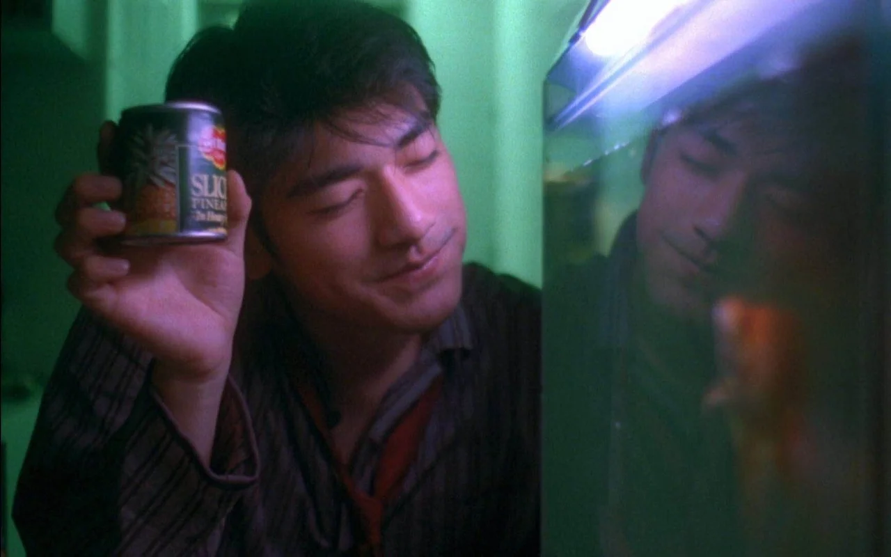 <중경삼림> - 오늘의 통조림과 함께이야기는 단절과 이별로부터 시작된다. 두 편의 영화는 각각 다시 두 개의 이야기로 나뉘어 있는데, 두 주인공의 상황은 비슷하게 묶이는 면이 있다. <중경삼림>의 두 주인공은 경찰 233 허지무와 경찰 663이다. 둘은 예기치 못하게 이별을 당해서, 그 아픔에서 벗어나지 못하고 있다. 233은 매일 유통기한이 자기 생일인 파인애플 통조림을 구매하며 생일 전까지 옛 애인으로부터 연락이 오길 기다리고, 동시에 자신이랑 옷깃이라도 스쳤던 모든 여자에게 전화하며 그리움과 외로움에 몸부림친다. 663은 그와 달리 집 밖에서는 점잖게 업무를 수행하며 괜찮은 체하지만, 홀로 집에 남았을 때는 수건이라던가 인형에 말을 걸며 버려진 비참한 처지를 물건에 이입시킨다. 그들에게 새로운 사람이 찾아오고, 이질적인 존재에 빠르게 감정을 나누기 시작한다.