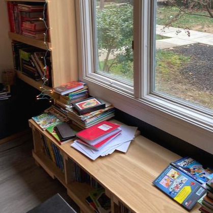 이 공간을 가장 잘 활용하는 사람은 우리 집 둘째다. 식구들보다 먼저 일어나는 편인 아이는, 아침에 일어나서 가장 먼저 하는 일이, 여기에 앉아 조용히 책을 읽으며 식구들이 깨기를 기다리는 일이다. 집 앞 나무에 날아드는 새도 보고, 나무를 타고 오르는 다람쥐도 보고, 시시각각 다채롭게 변화하는 창밖 풍경 구경까지 하느라 심심할 틈이 없는 것 같다.