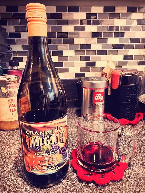 술 얘기가 나와서 말인데, '좋을 땐 한 잔, 괴로울 땐 두 잔'이라는 말을 증명이라도 하듯, 올해 많은 비즈니스들이 힘들었지만, 술 매출만큼은 엄청났다고 한다. 술집들이 사람들 받지 않고, 길에 술을 내놓고 팔기만 해도 술집을 열어 손님 받을 때보다 훨씬 매출이 좋았다고 할 정도다. 술을 전혀 마시지 않는 내가 술을 떨어뜨리지 않고 사다 놓게 만든 것도 코로나가 만든 뉴 노멀 현상 중 하나라고 할 수 있겠다. 코로나가 시작되고 산 술이 저 샹그리아가 한국 가게에서 샀던 복분자주에 이어 두 병째다. 저 컵에 든 술 반쯤 마셨는데 확 취기가 오른다.