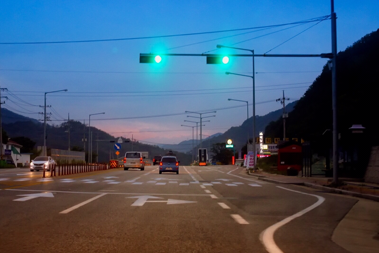 도로변에 도열한 허름한 쉼터와 쉼 없이 등장하는 휴게소, 소박한 식당들은 저녁해가 지는 시간이면 휘황한 불을 밝히고 저마다의 사연으로 도드라진다. 하지만 자기를 봐달라고 켜놓은 총천연색의 불빛들이 오히려 애처로워 보일 뿐이다. 차들과 사람들은 빠르게 그 가난한 풍경을 지나치고 오롯이 길만이 남아 노변의 가게들이 털어놓는 애환을 들어주고 있다. 묵묵히 길답게.