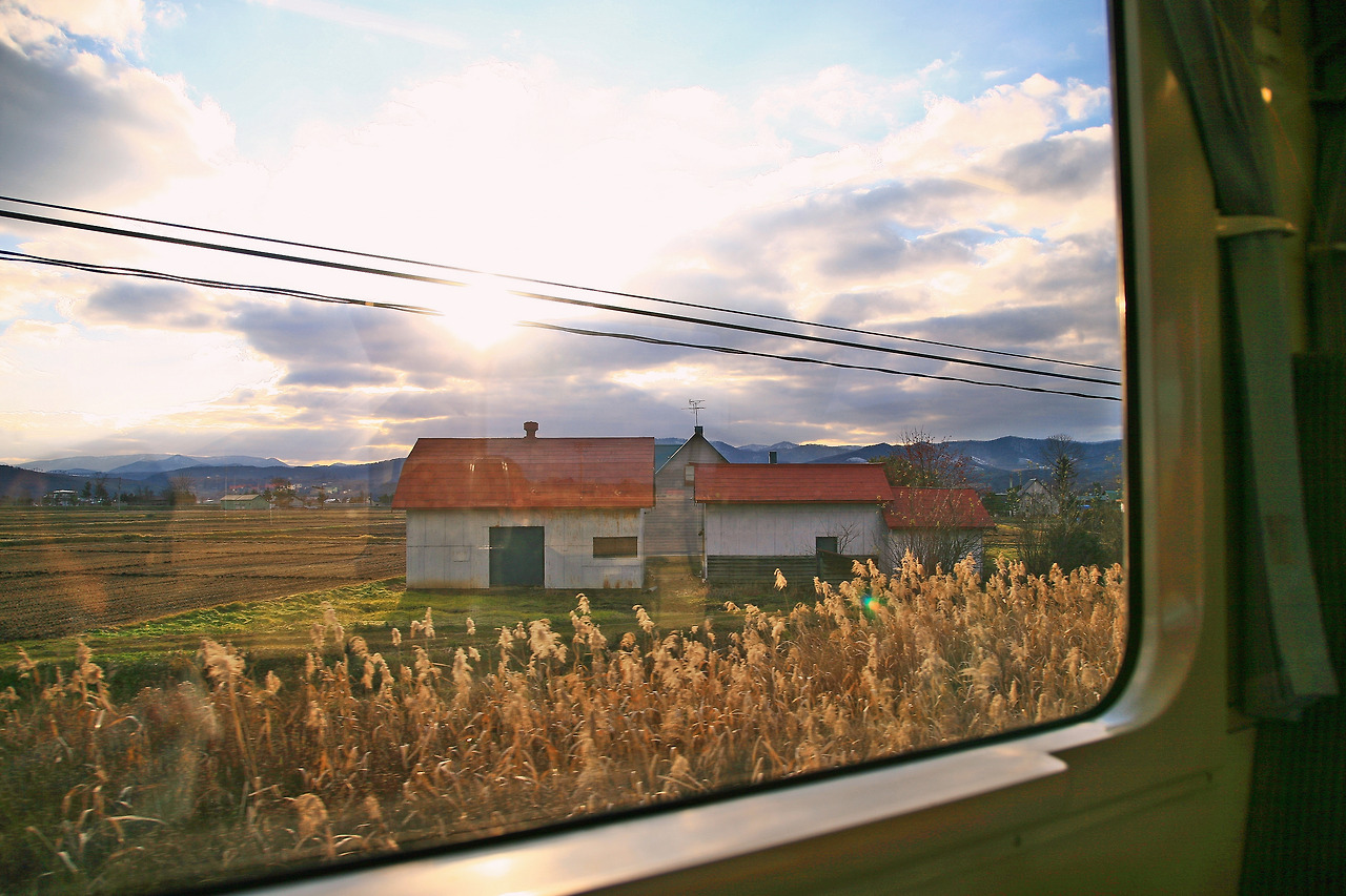 신치토세 공항에서 비에이로 가는 길에는 다행히 날씨가 나쁘지 않았다. 일본기차여행의 재미 중 하나는 차창으로 밖의 풍경을 바라볼 수 있다는 것이다. 물론 밖을 볼 수 있는 것은 어느 기차나 마찬가지지만 좌석이 창을 향하게 되어 있는 기차가 많다. 고개를 돌릴 필요 없이 풍경을 감상할 수 있다는 뜻이다. 눈 쌓인 들판과 가옥의 생김새와 산과 강의 모양을 하염없이 바라보는 것. 지루해지기도 하지만, 날씨의 변화에 따라 시시각각 변화는 처음 보는 풍경에 가만히 앉아있기만 하는 사진가는 그리 많지 않을 것이다.