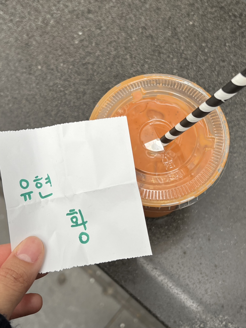 유미는 짧은 시간 동안 가장 정이 많이 갔던 사람이다. 포근하고 발랄한 에너지가 느껴지는 햇살 같은 사람이다. 고작 2시간 같이 있었지만, 누구나 그녀가 좋은 사람이라는 것을 알 수 있을 정도로 투명하고 순수해 보이는 사람이다. 내가 포스기 앞에서 주문을 받을 때도 옆에서 “모르는 게 있으면 내가 도와줄게. 내가 옆에 있어!”라고 작게 응원해 주고, 중간중간 “지금까지 어때? 기분 괜찮아?”라고 내 상태를 확인해 주고, 내 몫의 햄치즈 크루아상을 남겨뒀으니 꼭 먹으라고 말해준 사람이다.(정신이 없어서 끝까지 먹지는 못했다.) 2시간의 트라이얼이 끝난 후 내가 가야 한다고 말했을 때, 시간이 너무 빨리 갔다며 넌 좋은 사람이라 꼭 함께 일하고 싶다고 말해준 사람도 유미다. 빈말일지는 몰라도 기분은 매우 좋았다.