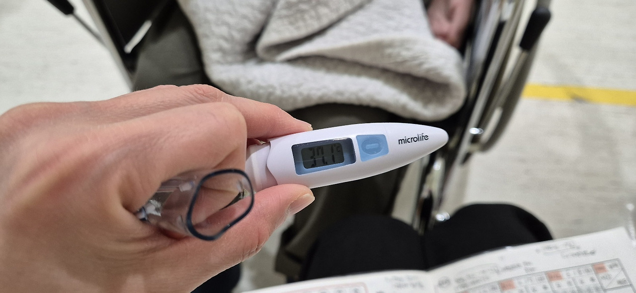 이런 농담을 주고받으면서도 그럼에도 정음은 집에 와서는 그나마 다소 편안했다. 몸과 마음은 언제나 힘들지만 정음이가 좋아하는 모습을 간간히 지켜보면서 희망을 느끼고 있었다. 그랬는데. 정말 그랬었는데. 오후 3시 30분. 평소처럼 열 체크를 하다가 약간의 이상 현상을 감지했다. 37.5도를 잘 찍지 않았는데. 한껏 예민해진 나는 20분에 한 번씩 열체크를 시작했다. 들쭉날쭉 불쑥 올랐다가 쑥 떨어지고. 내가 잘못 쟀나 싶어서 평소 재던 같은 부위가 아닌 다른 팔 겨드랑이에 재보기도 하고. 그럼에도 잘 떨어지지 않는 열. 자꾸 37도에서 웃도는 열 패턴...