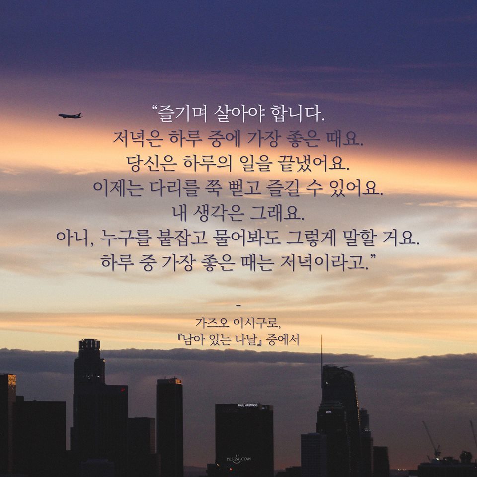 쌍둥이를 출산하고 워킹맘이 되어 살아가는 새로운 나의 삶에서 요즘 가장 좋고 기다려 지는 시간은 단언컨데 바로 ‘저녁’이다. 남아있는 나날의 저 문구가 상당히 공감 갔던 이유는 바로 내 이야기 같아서였다. 공감은 그런 거니깐. 내 말을 누군가 대신 말해주는 것 같은 감정이 드는 순간이니깐 말이다.