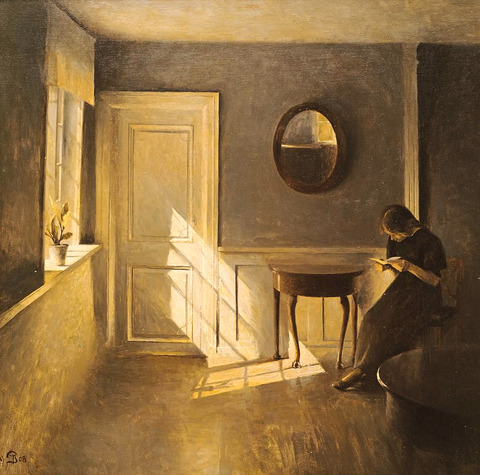 Girl reading a letter in an interior. 1908. @ Peter Vilhelm llsted